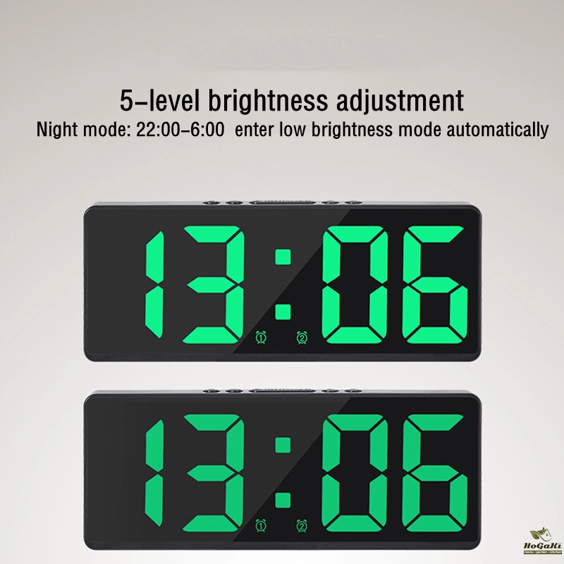 In the time state, short press the SNOOZE button, the brightness will be set in cycles from 1 to 5