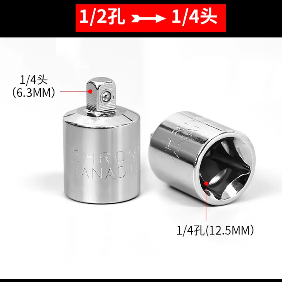 1-pc. 1/4 in. drive (F) to 1/2 in. drive (M) reducer