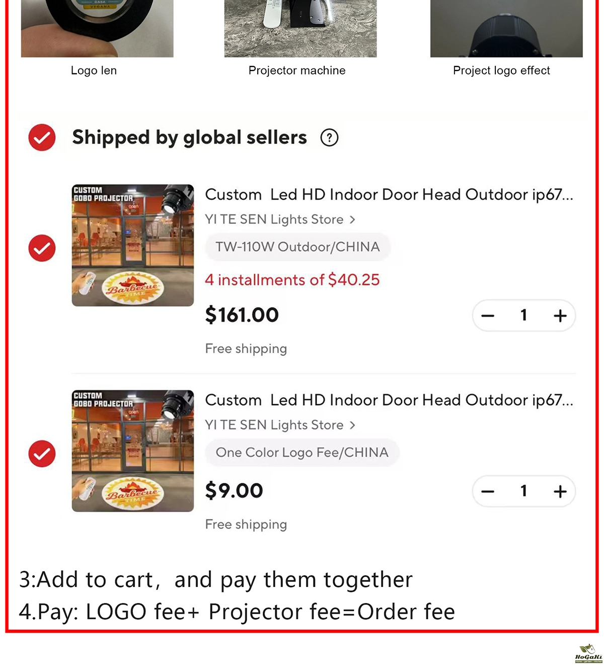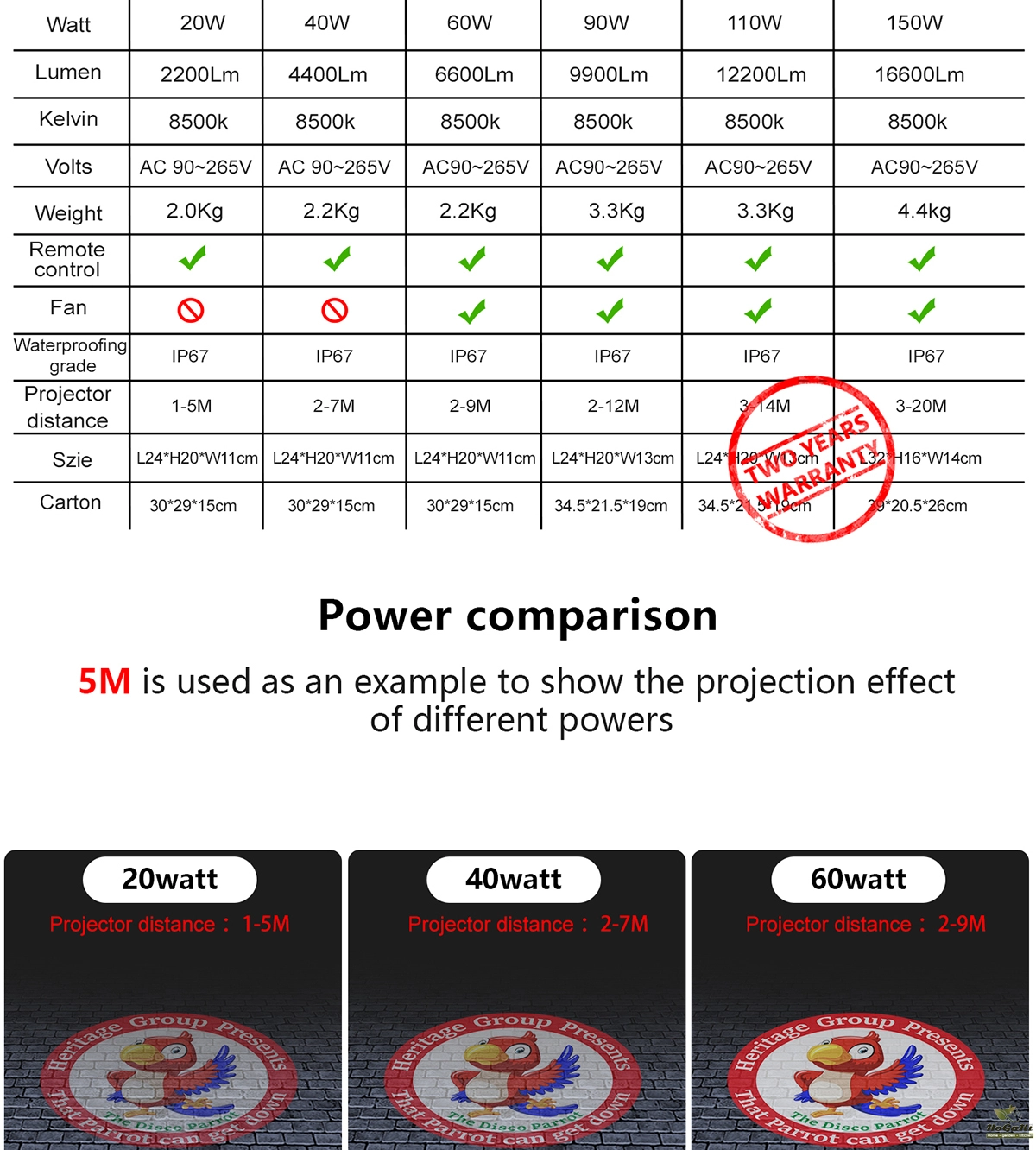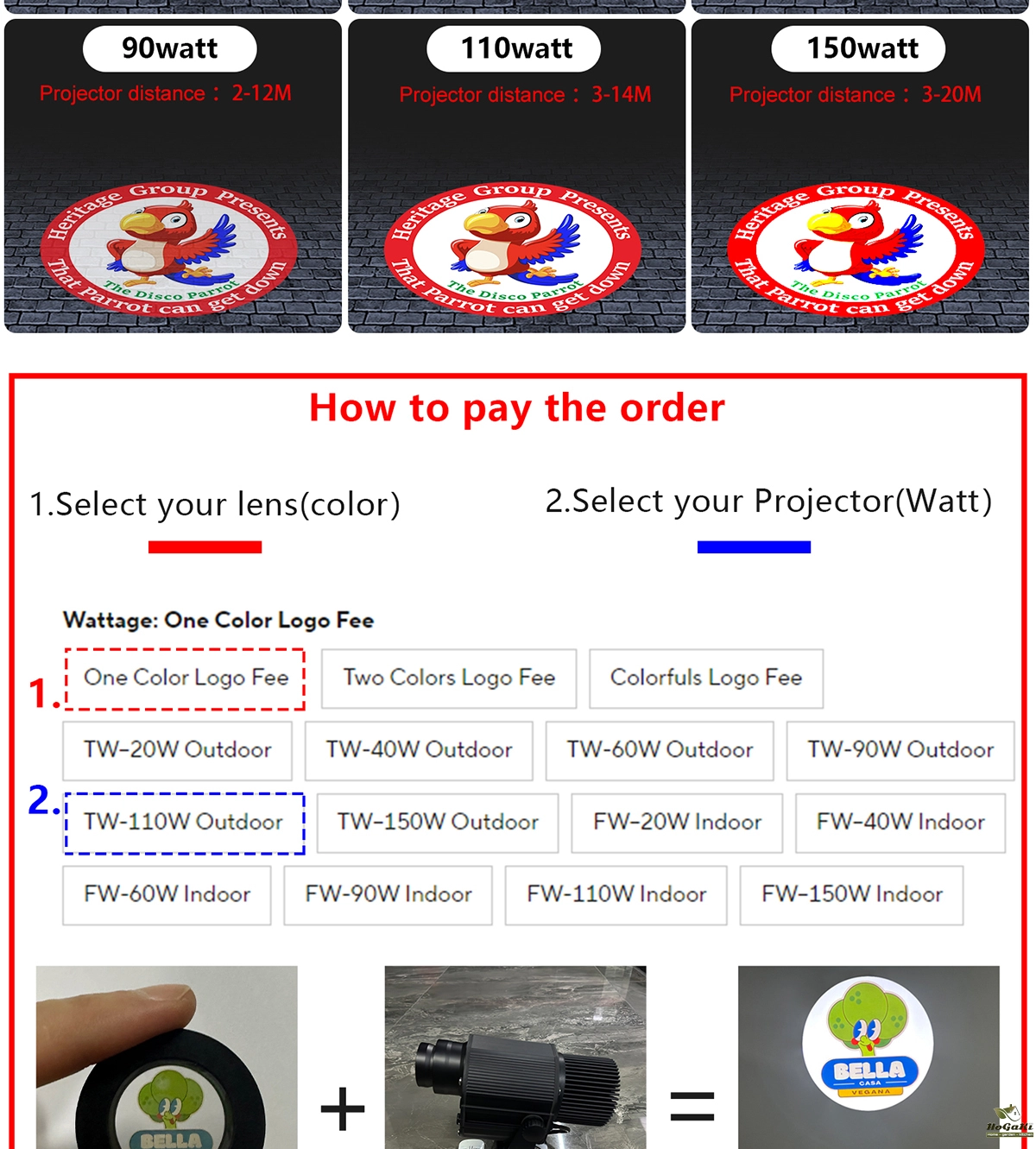 2. All logo projectors have two-year warranty. If there is any problems of logo projector parts under "normal use", new parts will be sent to you and your should pay the shipping cost.