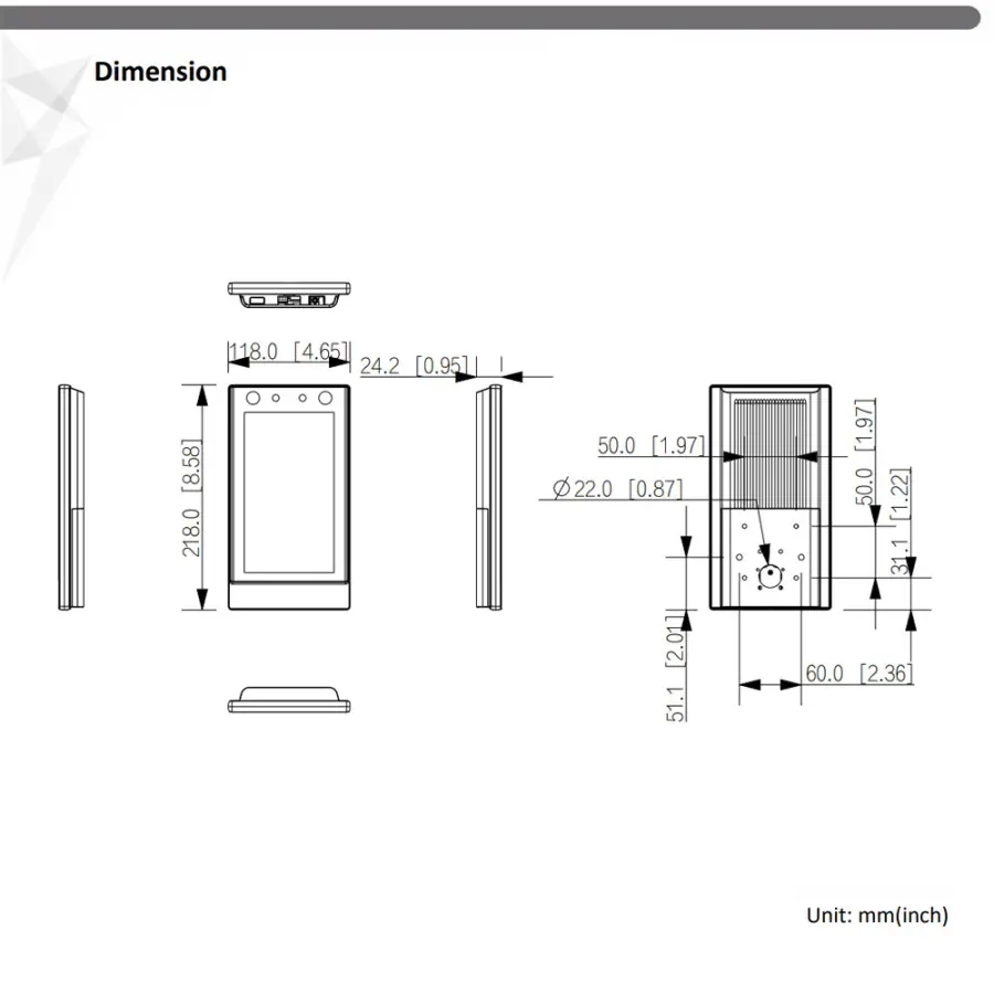 Face Recognition Distance:0.3 m–2.0 m (0.98 ft–6.56 ft)