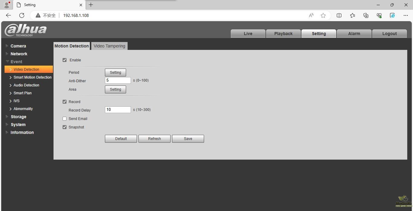 > Abnormality detection: Motion detection, video tampering, audio detection, no SD card, SD card full, SD card error, network disconnection, IP conflict, illegal access, and voltage detection.