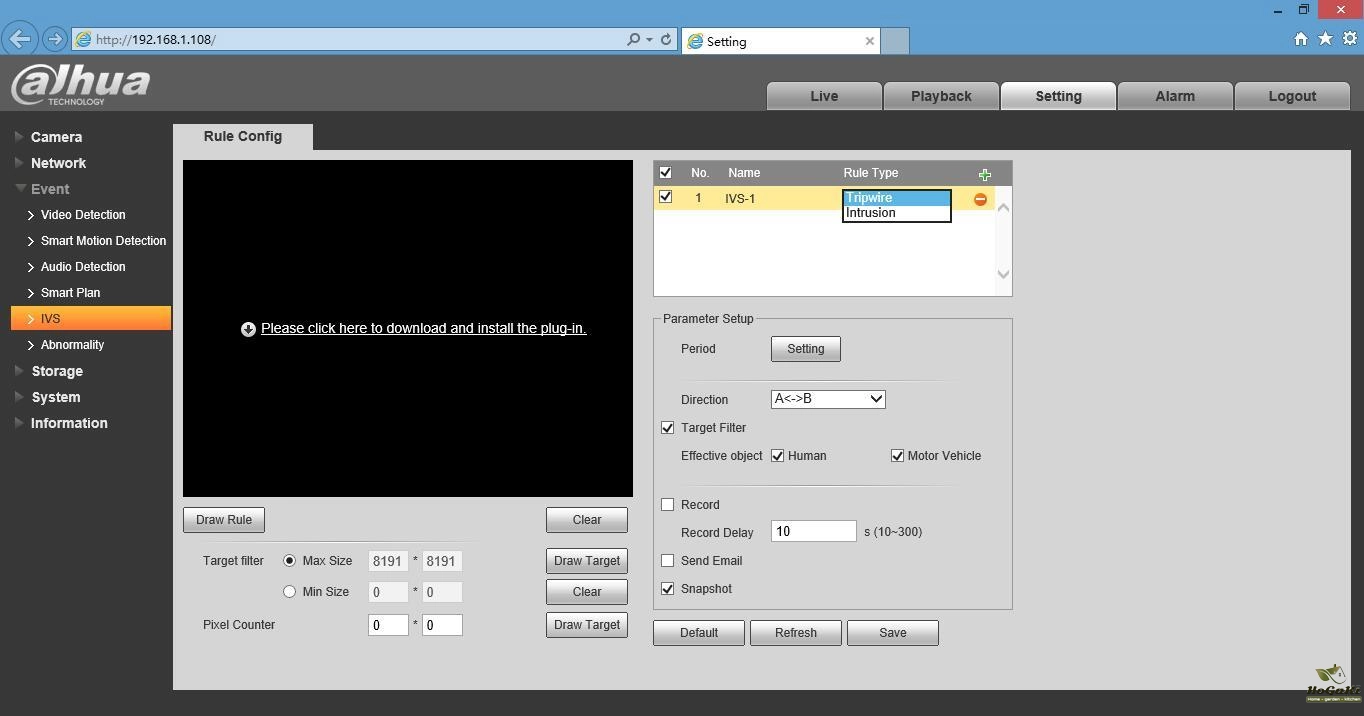 > Intelligent detection: Intrusion, tripwire (support the classification and accurate detection of vehicle and human)