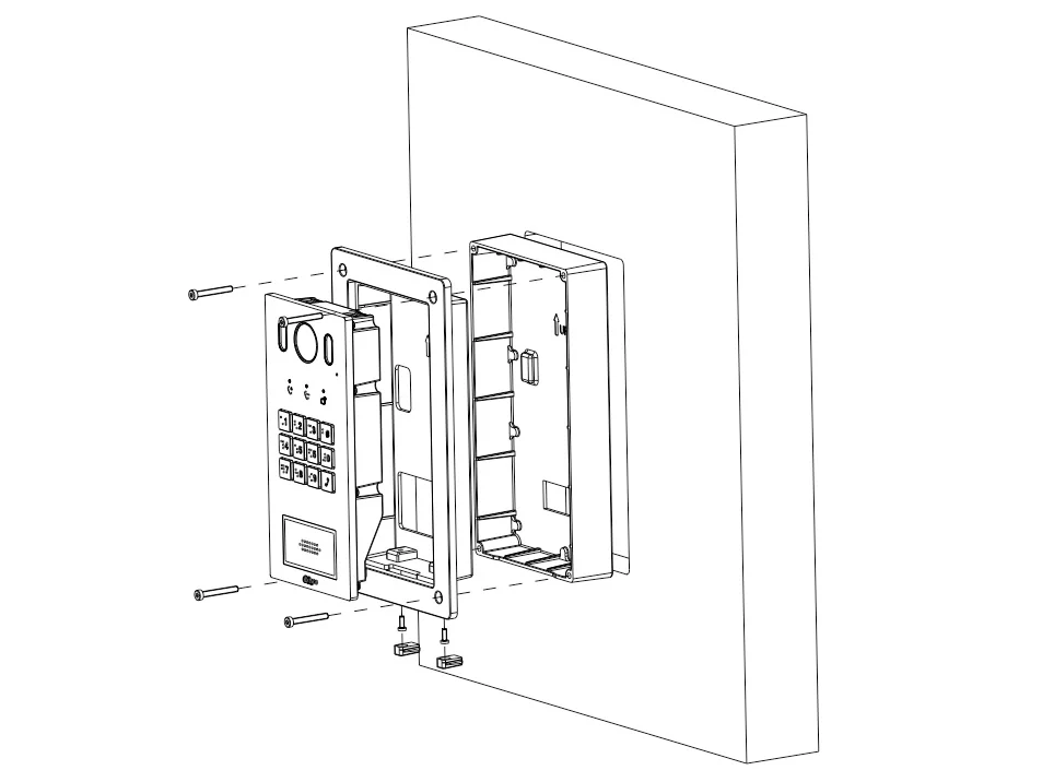 Step 4 Fix the VTO in the enclosure with the M3 screws, and then put sealant between the VTO and the enclosure.