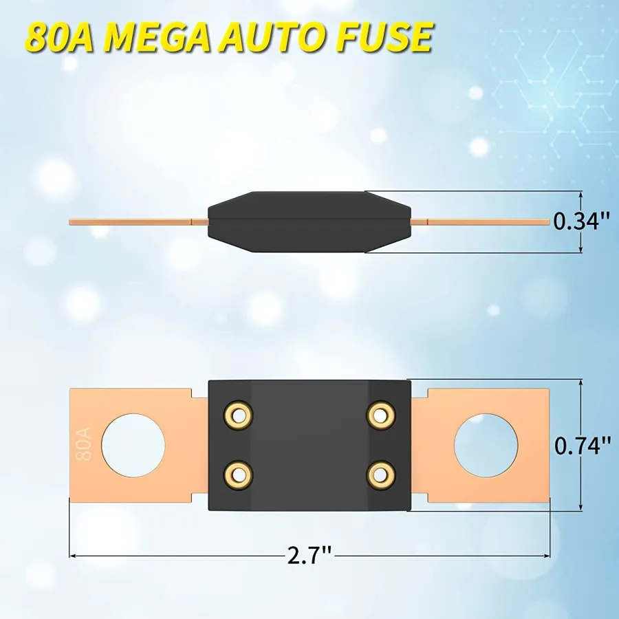 Package Includes: MEGA Car Fuse Holder Kit includes fuse, 1* Car fuse holder and cover. It contains M8 bolts and hex nuts; fixed with screws to ensure safe contact even in the case of high current.