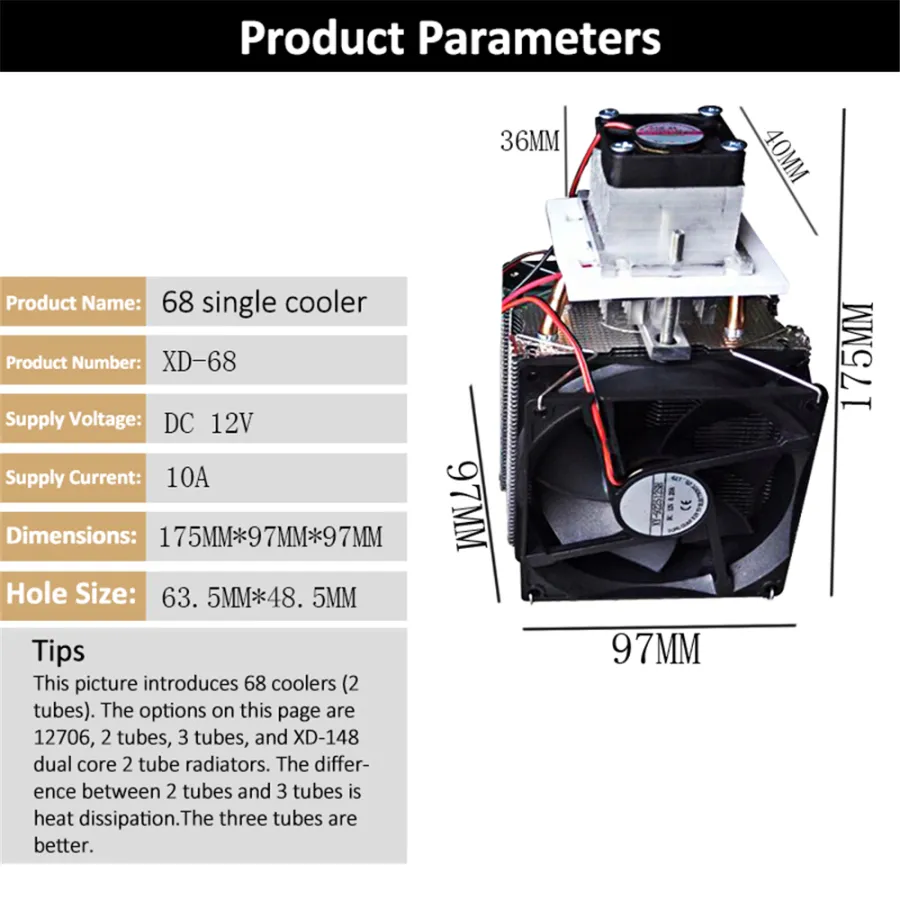 1 x DC 12V 10A 72W Thermoelectric Peltier Refrigeration Cooler Semiconductor Air Conditioner Cooling System DIY Kit with Fan