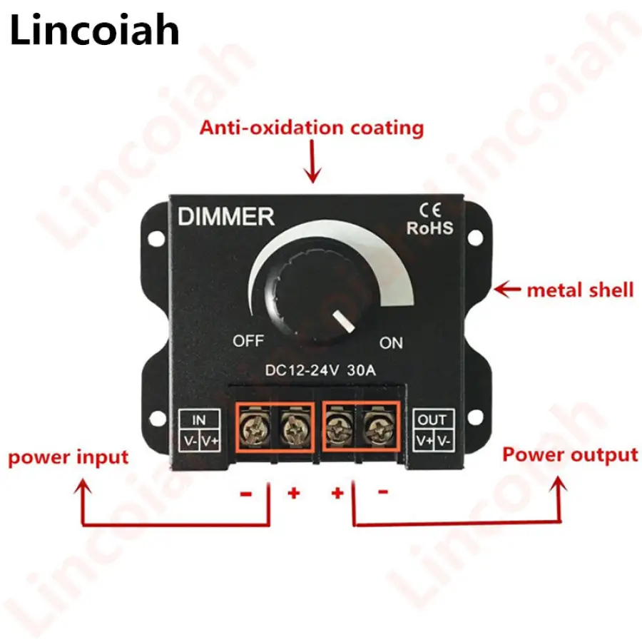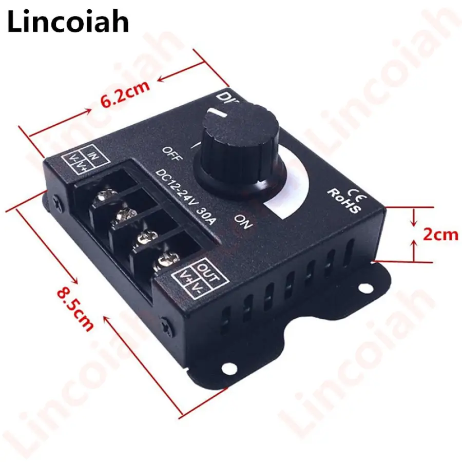 Lincoiah DC 12V-24V LED Dimmer Switch 30A 360W Voltage Regulator Adjustable Controller For LED Strip Light Lamp LED Dimming Dimmers