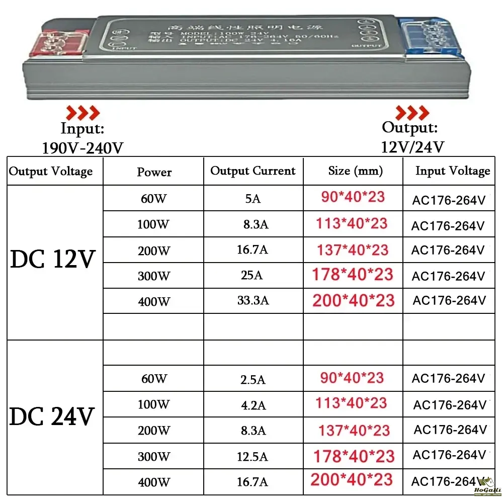 Super Thin AC DC Transformers 220V To 12V 24V Switching Power Supply 12 24 V Volt 60W 100W 200W 300W 400W