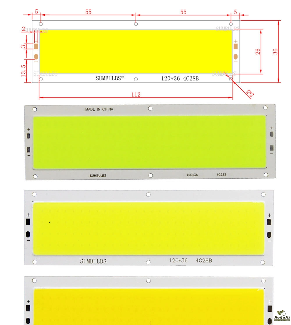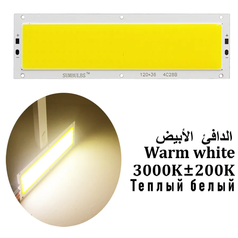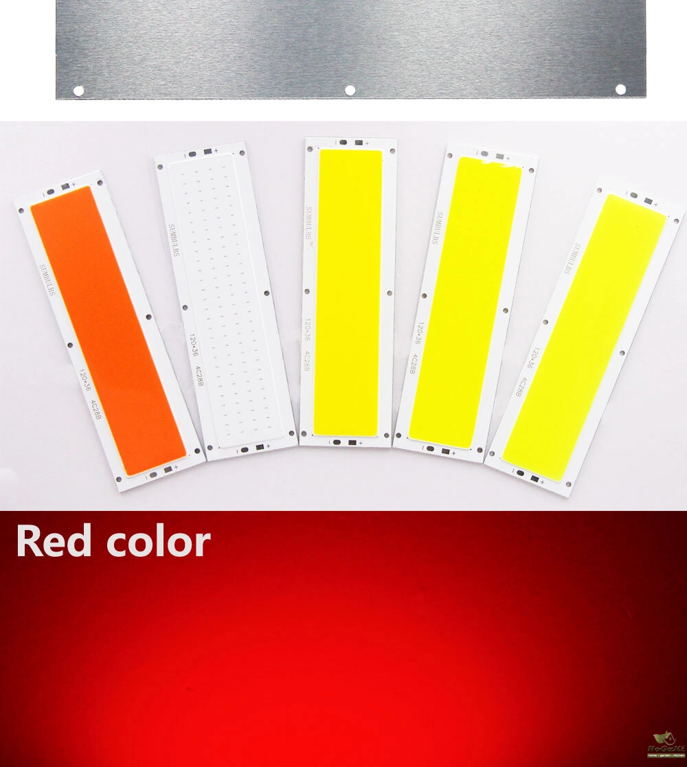 DC 12V LED COB 12W Chip Light Source Strip Bulb Panel Warm Natural Cold White Blue Red Green Color 120x36mm For DIY Car Lamp
