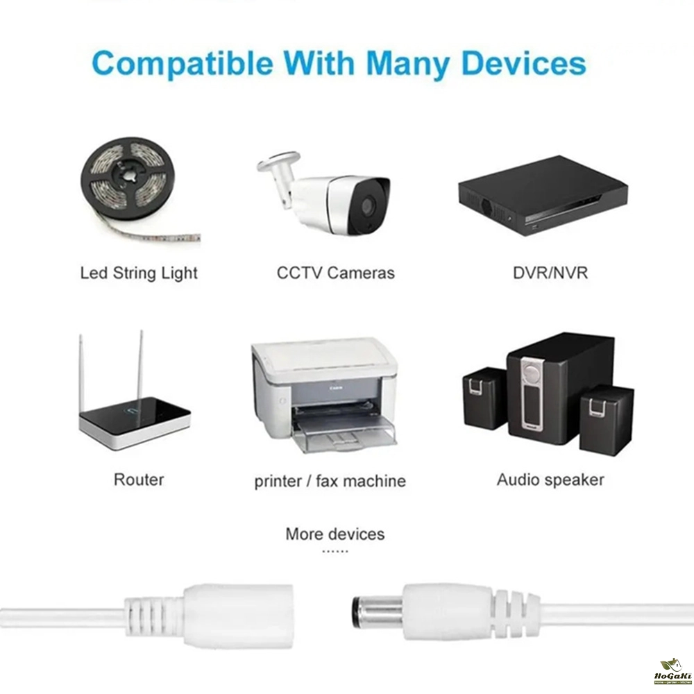 This DC power extension cable (Male to Female), cable be used to extend the power for applications such as CCTV, Transformers etc