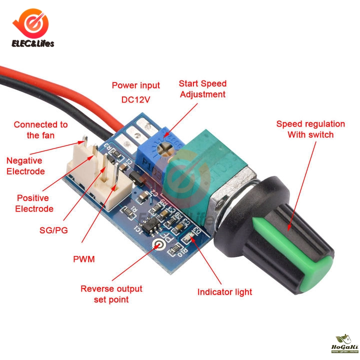 This is a four wire PWM fan governor. It can only control 12V four wire fans that support PWM speed regulation. For example, many 12V four wire chassis or CPU fans cannot control 2-3 wire fans
