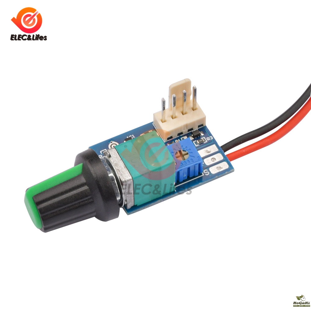 Pay attention to the positive and negative poles and the power supply voltage. After the power fan is connected, it can be used. The potentiometer is closed counterclockwise to the end, and the maximum output is clockwise to the end
