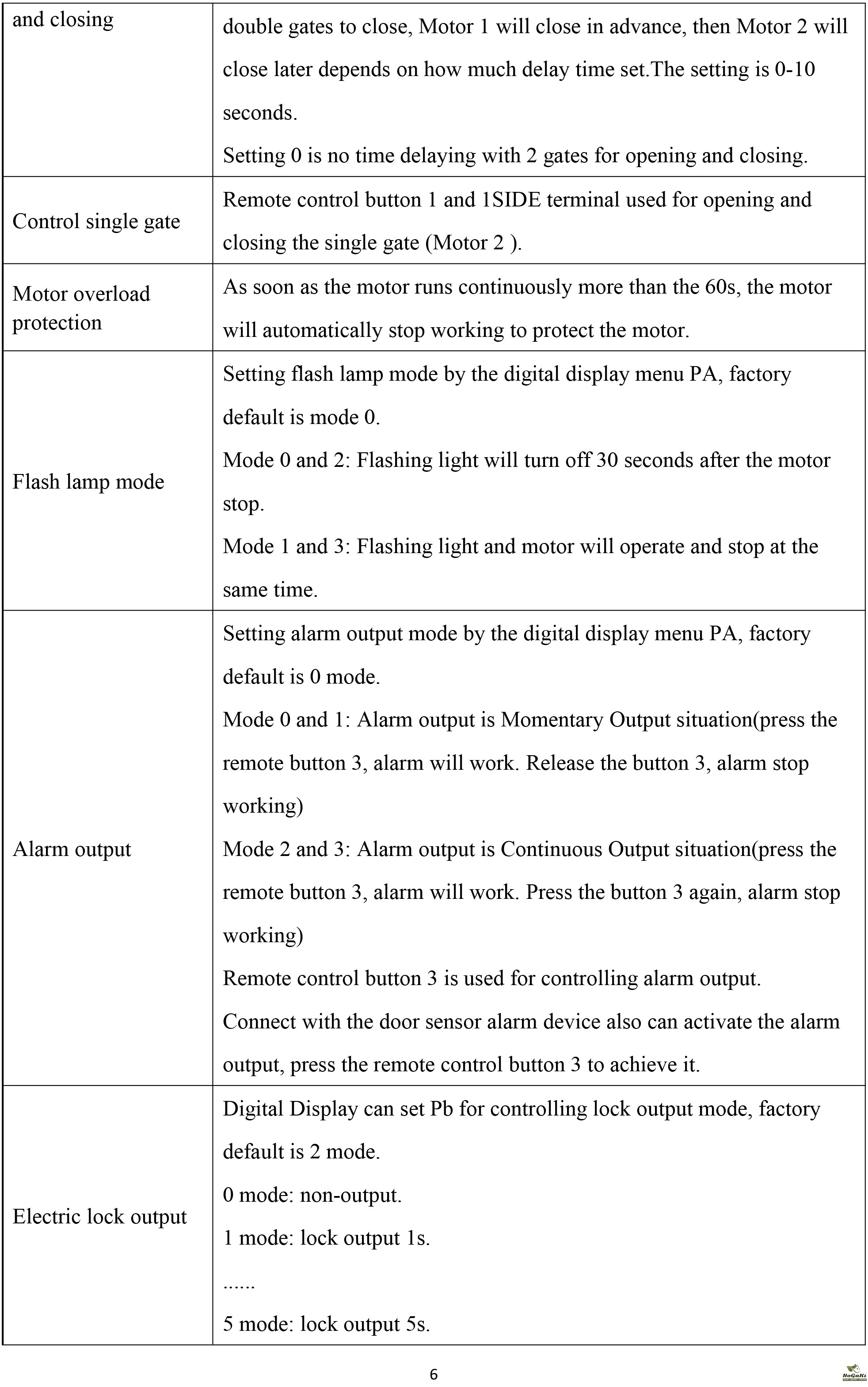 1.Control panel voltage input: 24VDCAC. Can connect 2PCS 12V 9AH back up battery.