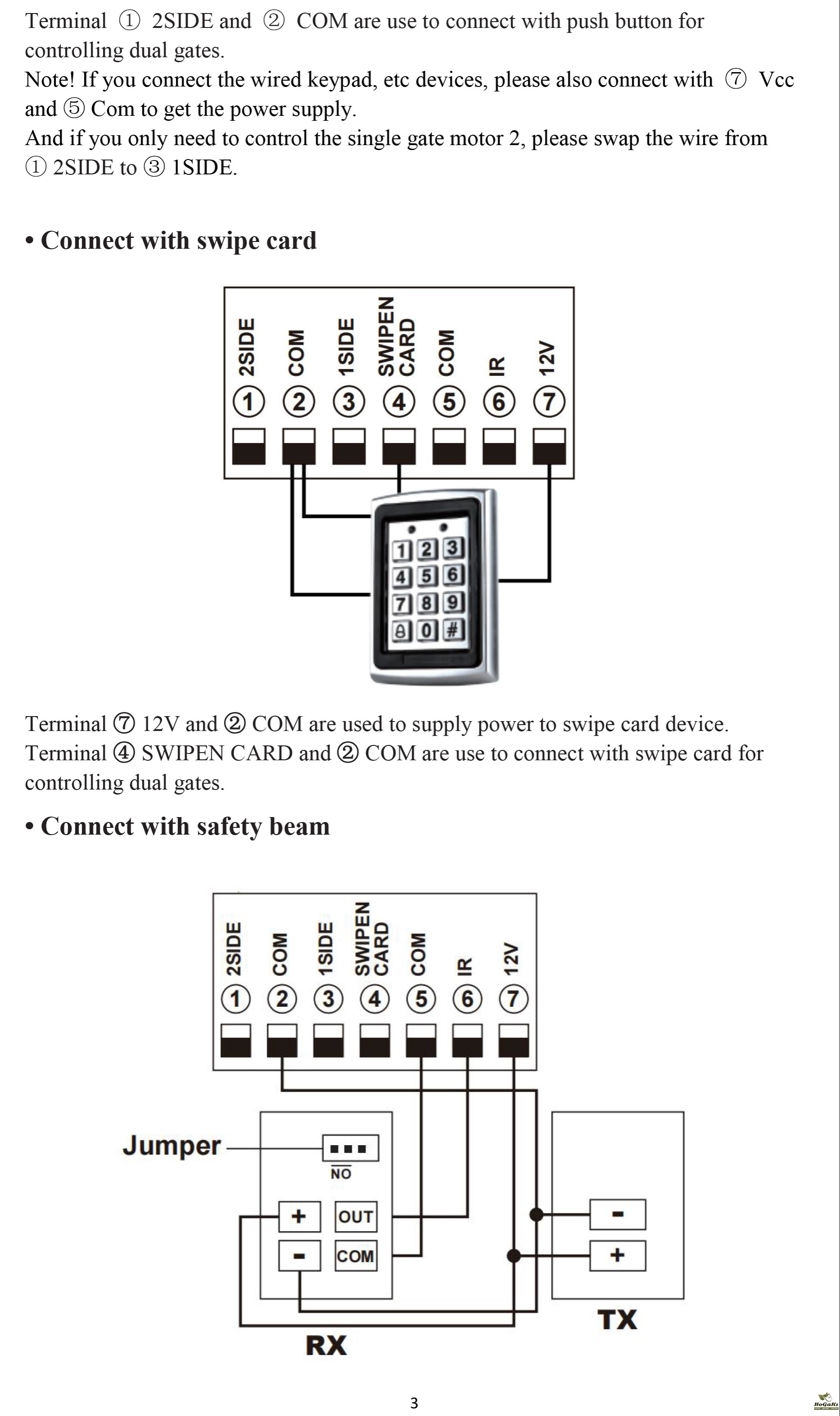 Extensive Accessory Support:Includes terminals for various accessories like loop detectors, photocells, and keypads for comprehensive gate management.