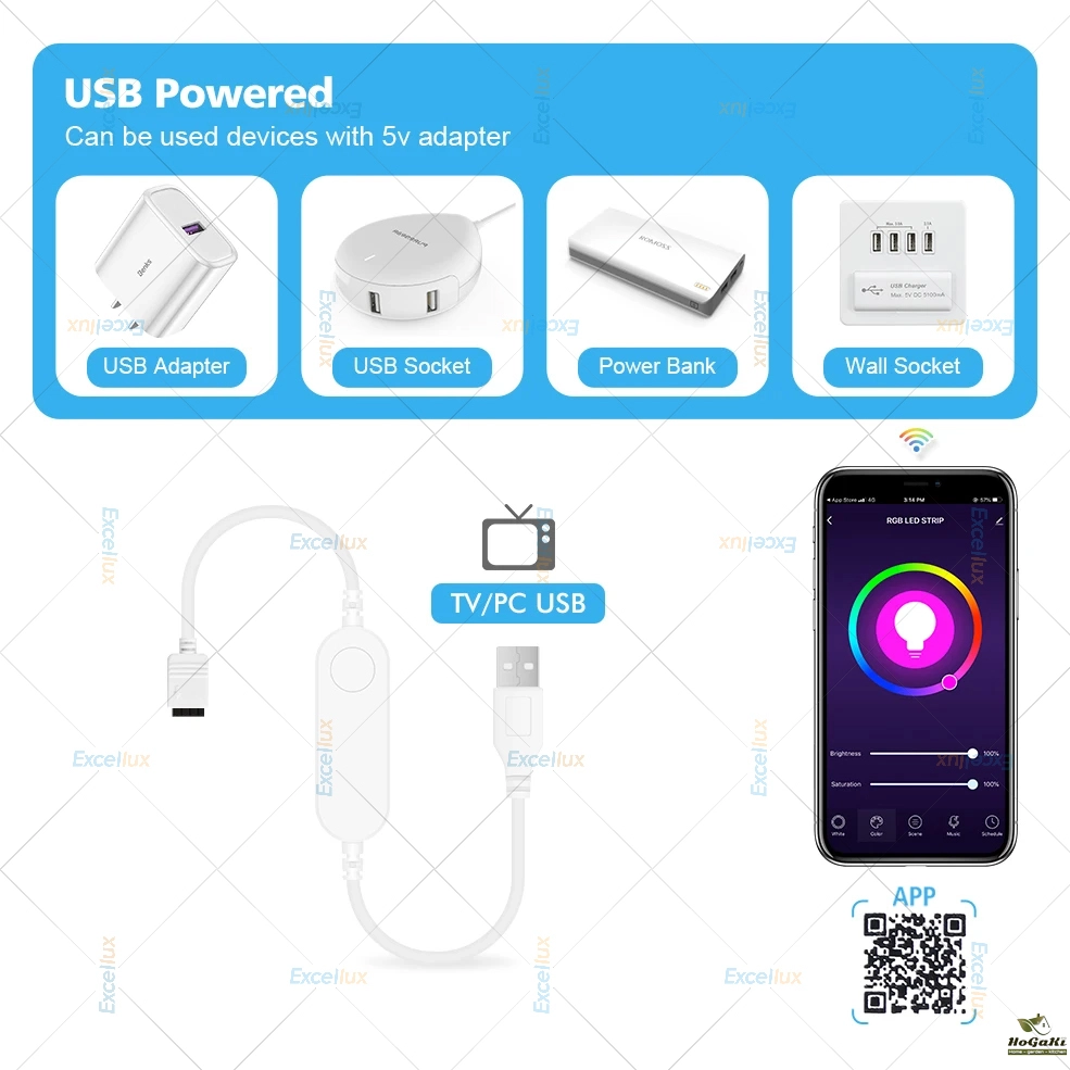 ==5V USB controller must work with 5v led strip and 5v USB power. Do not use 5v usb controller with other volatge power led .