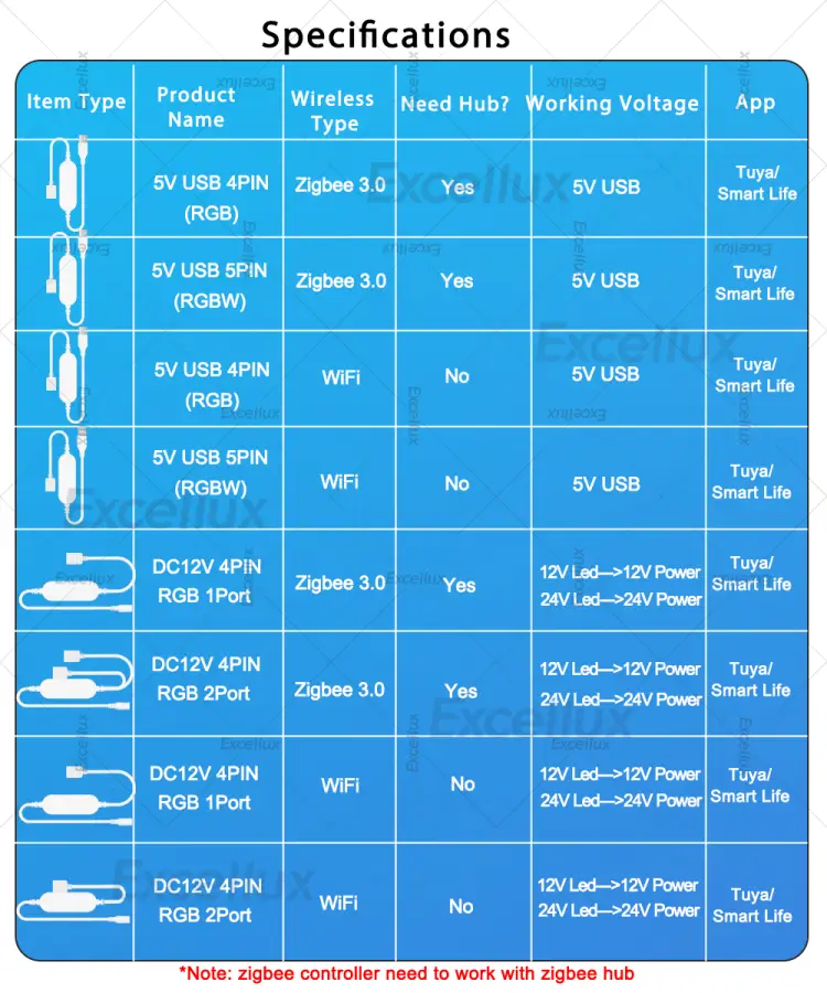 Answer : ==Wifi controller can use with your 2.4ghz wifi network directly ;The zigbee controller must work with zigbee hub or zigbee gateway ! If you do not have zigbee hub ,please buy wifi controller