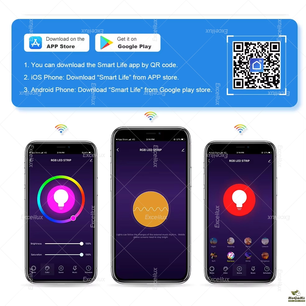 2.When led strip flash red color ,Search "Smart Life" on your app store, or scan the QR code on User Manual to download and install it.