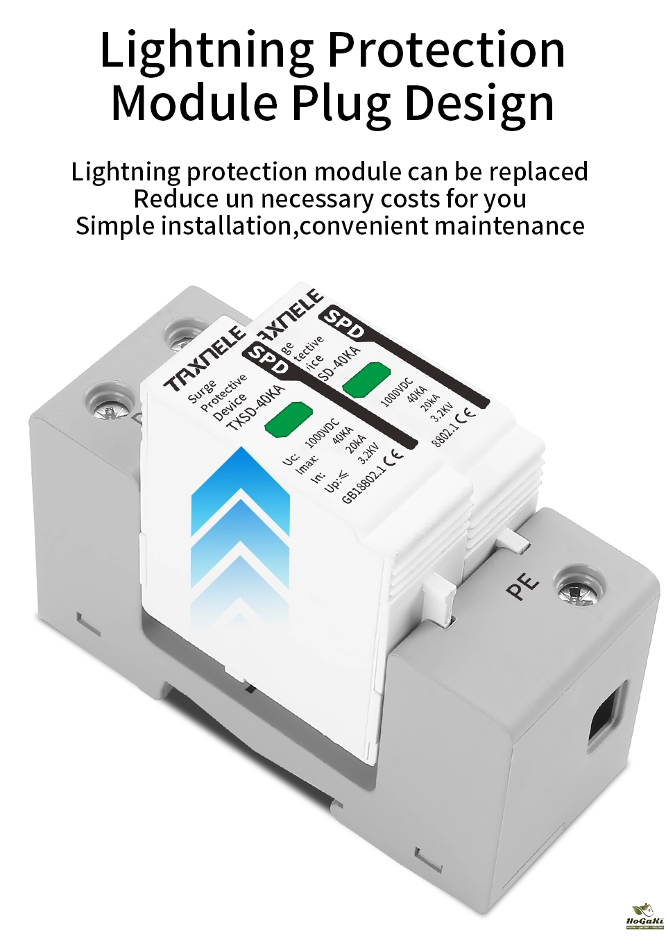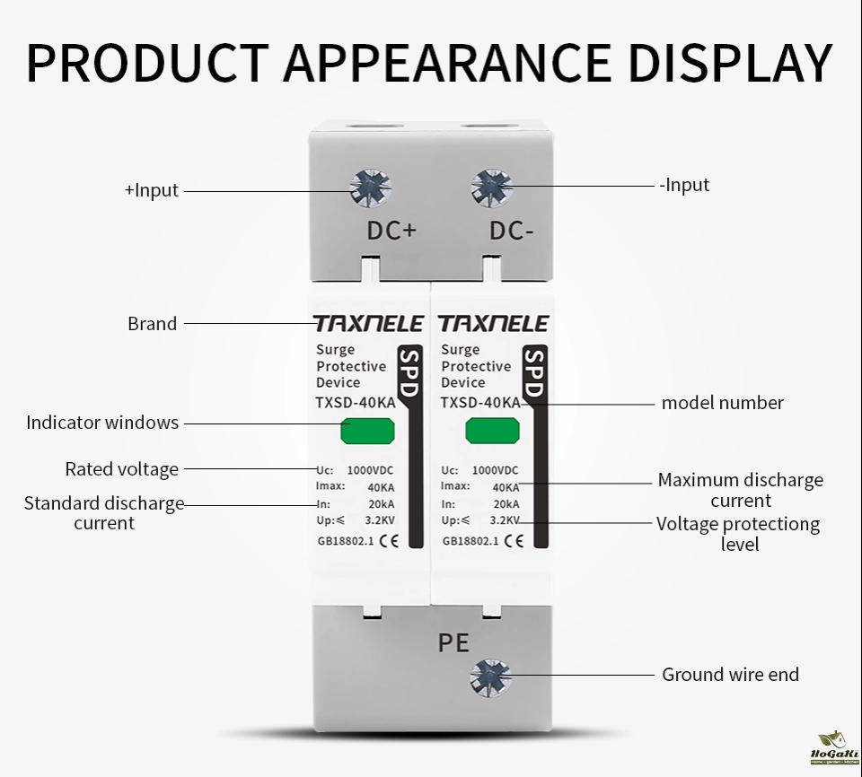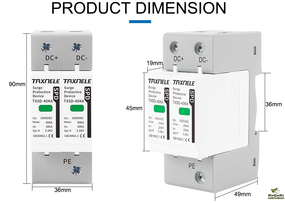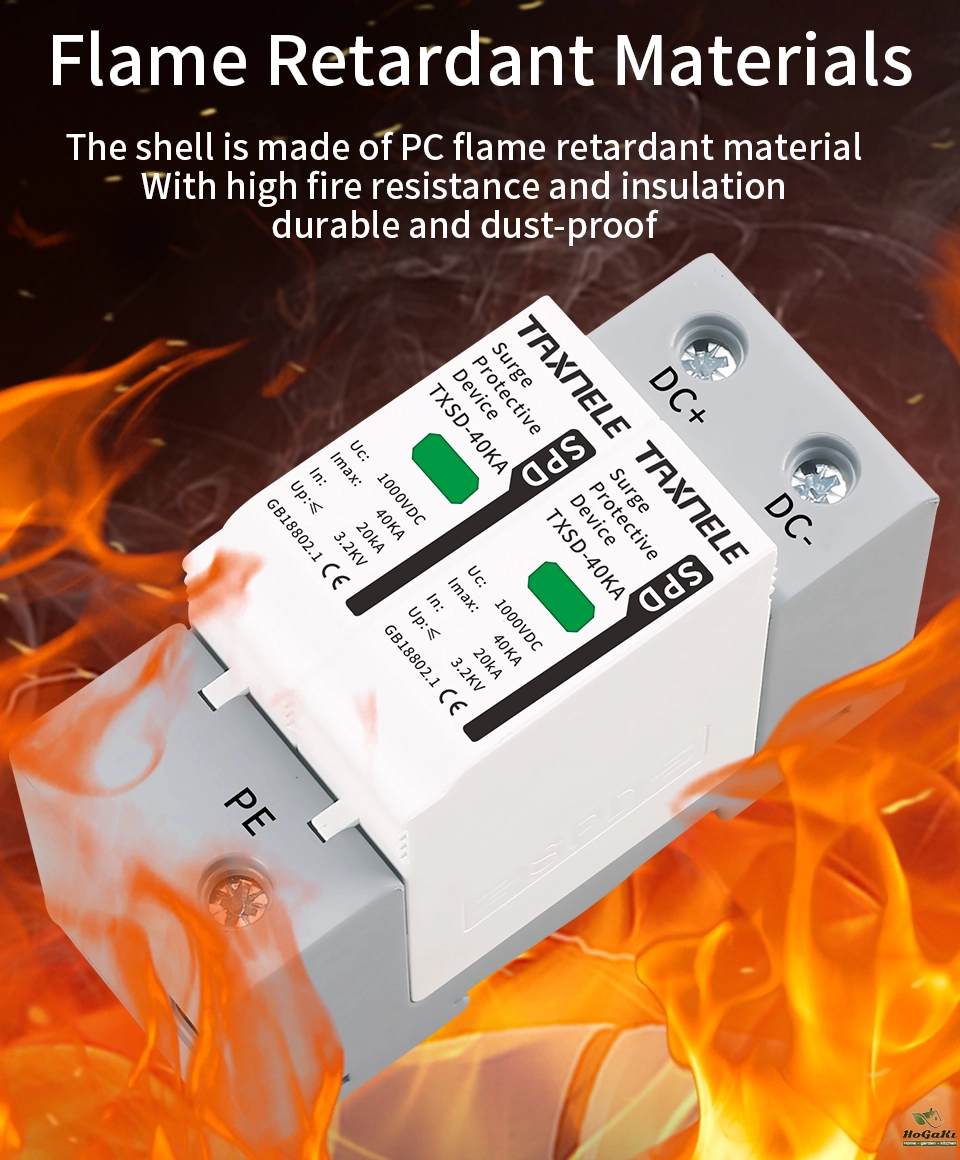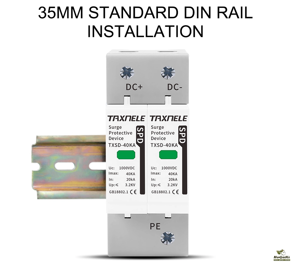 Surge protective device, protect against lightning surge voltages in solar system (photovoltaic power supply system). These units must be installed in parallel on the dc networks to be protected and provide common and different modes protection. Its installed location are recommended at both ends of the dc power supply line (solar panel side and inverter/converter side), especially if the line routing is external and long. High energy MOVs equipped with specific thermal disconnectors and related failure indicators.