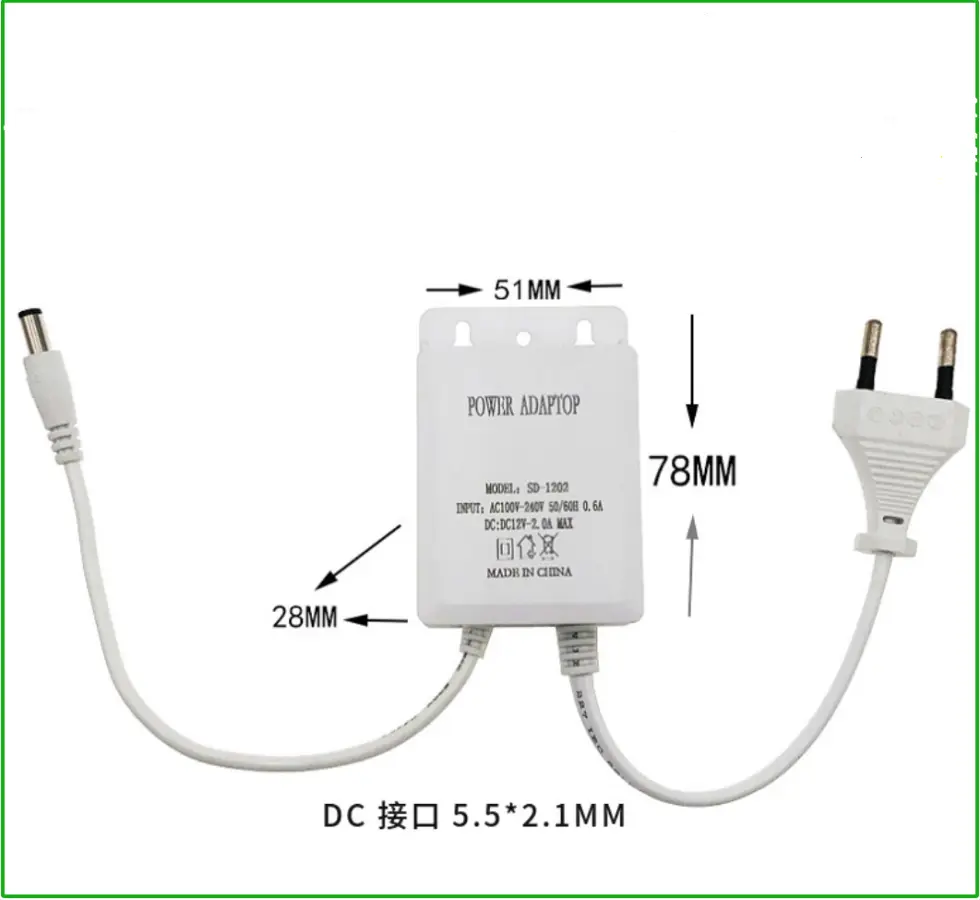 4. Output voltage: DC12V, current 2A, +-10 error. Please do not use it beyond the scope.