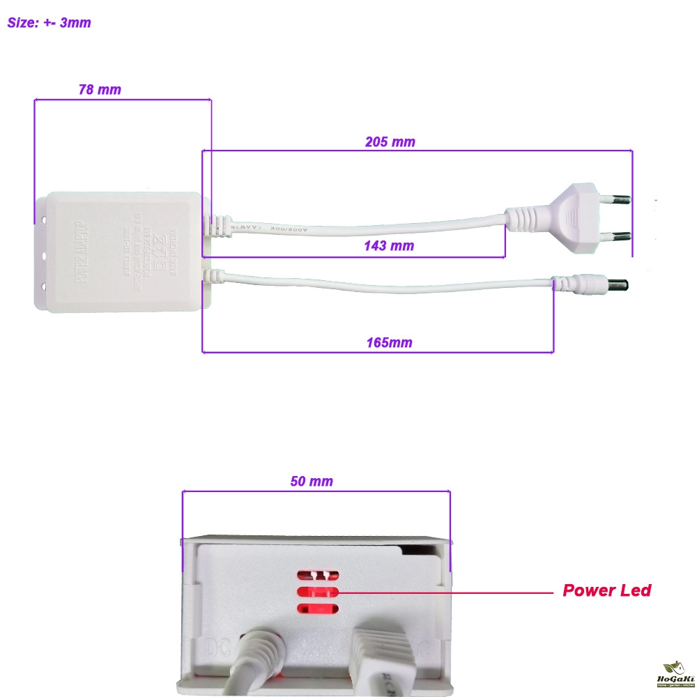4. Output voltage: DC12V, current 2A, +-10 error. Please do not use it beyond the scope.