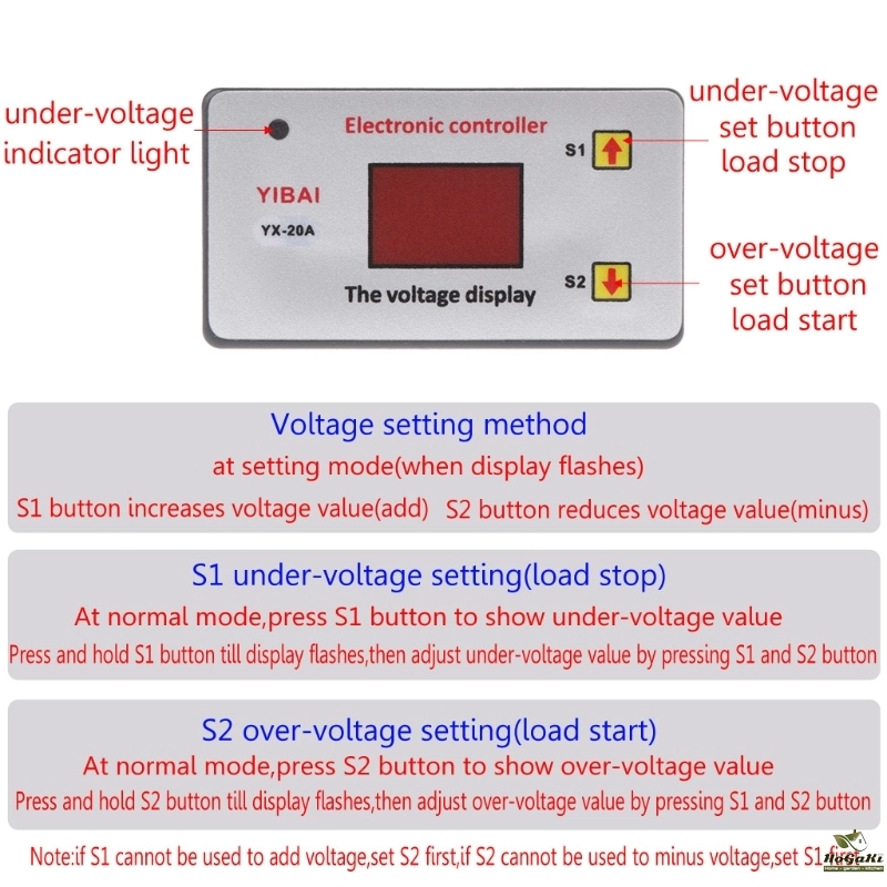 This is a under-voltage switch controller used to turn off the power of load in the event of the voltage dropping below a set value.