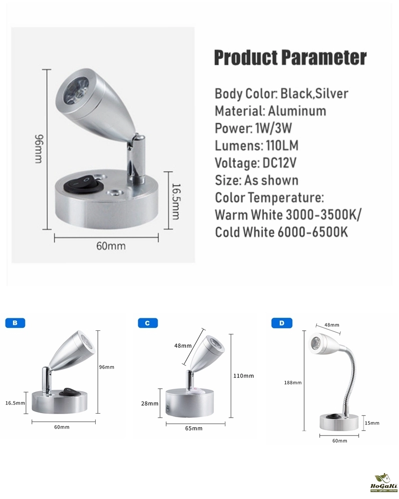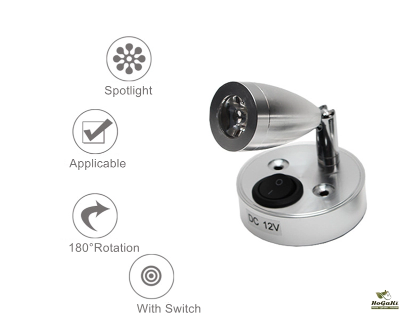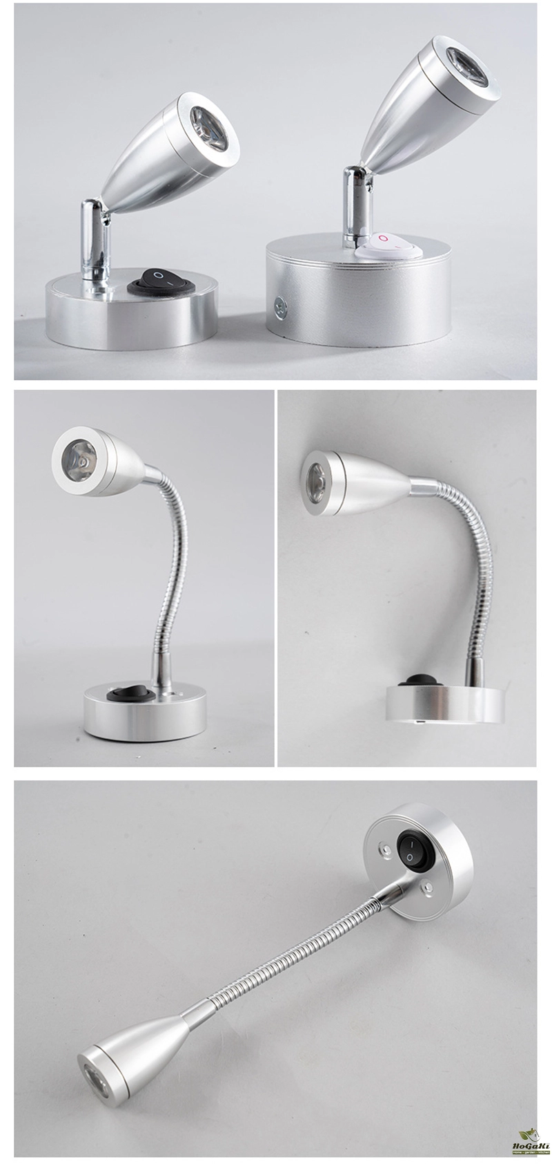 DC12V LED Spot Reading Light RV Boat Caravan Camp Trailer Bedside 3W Aluminum Spotlight Adjustable Interior Lighting With Switch