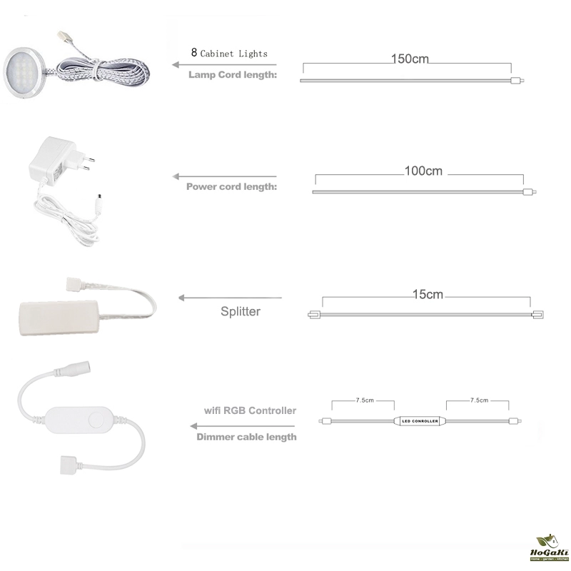 All necessary accessories included: adapter, splitter, extension cables, adhesive tapes, very easy to install and will protect your furniture.