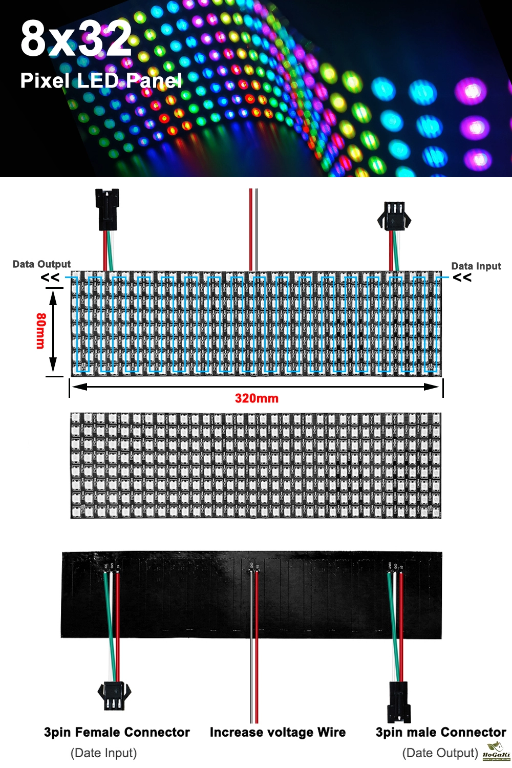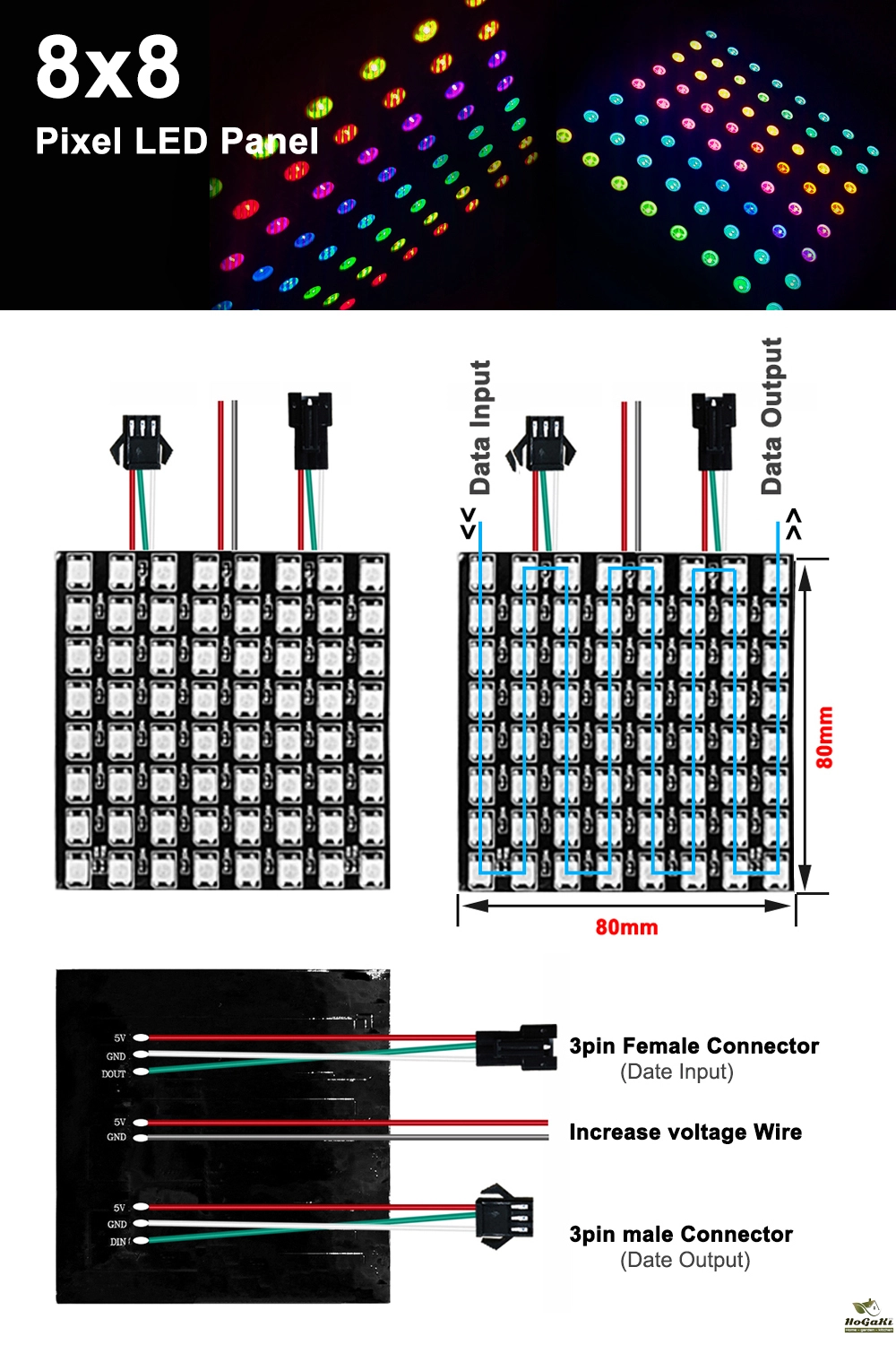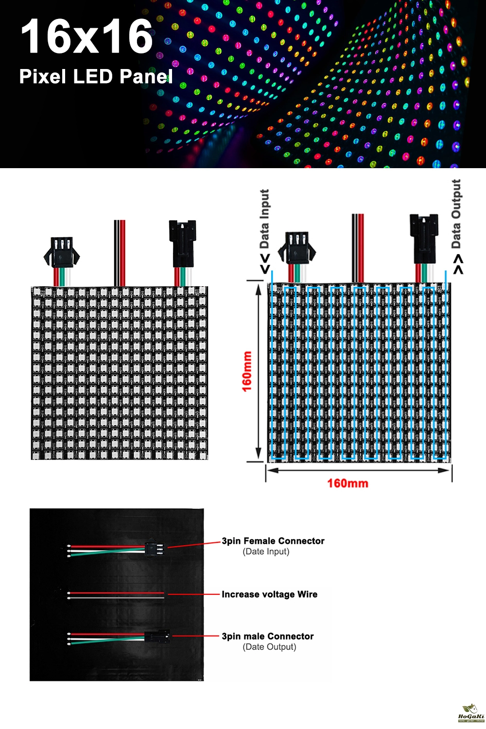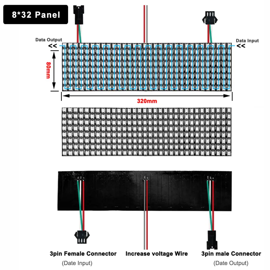 LED Quantity: 16*16 8*32 256 Pixels/8*8 64Pixels