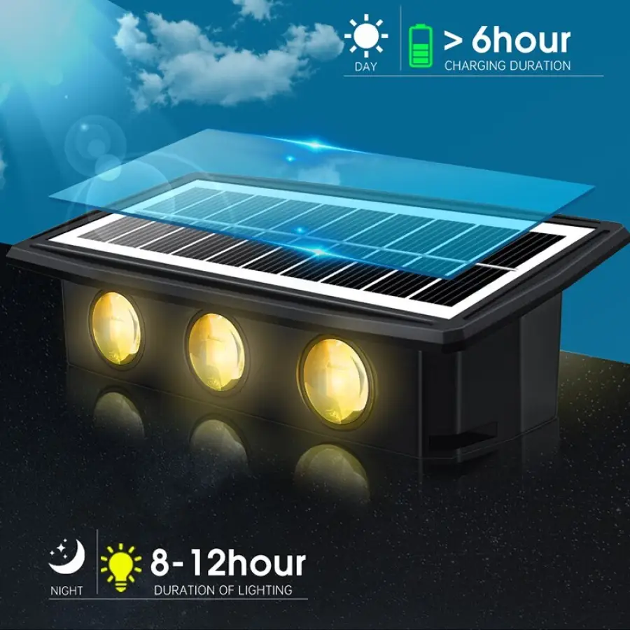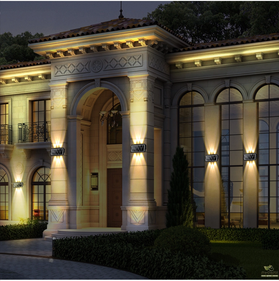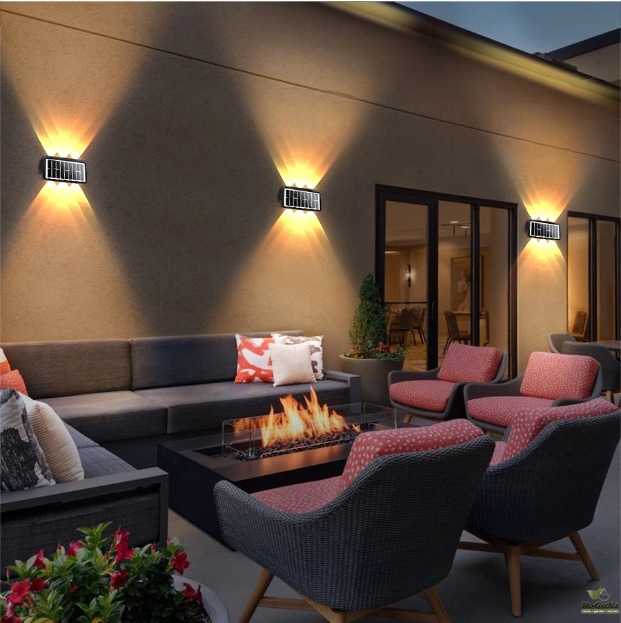 【Auto On/Off Moden Wall Sconce】-- Remember to turn on the switch before use. The exterior lighting glow up and down automatically charges during the day and auto on at night.