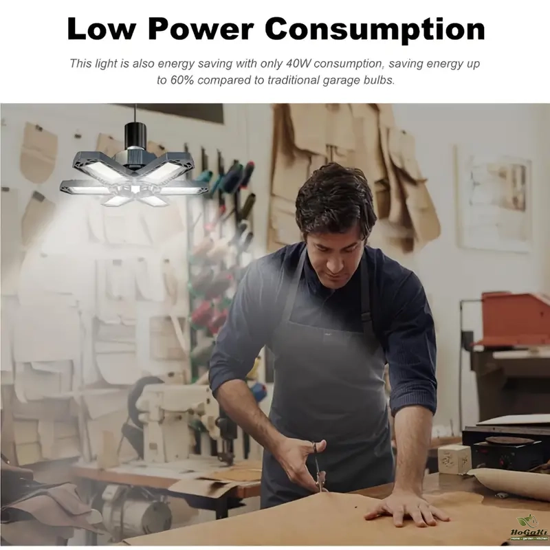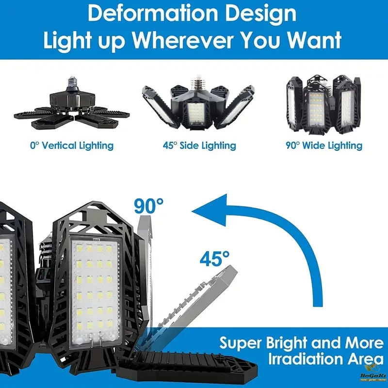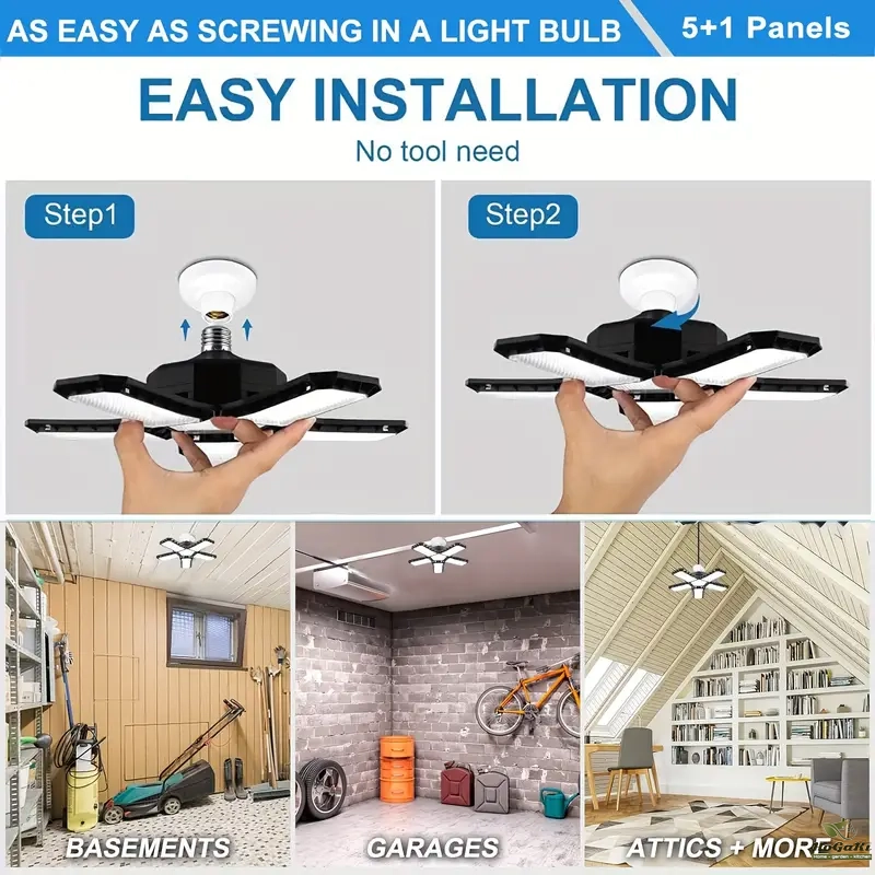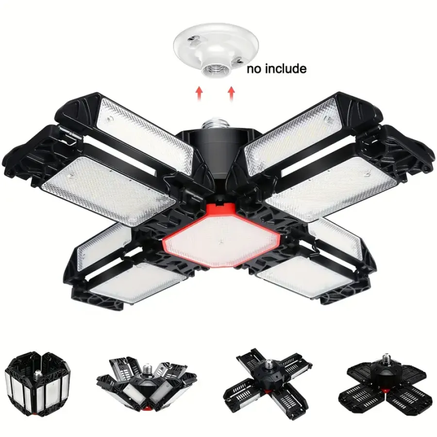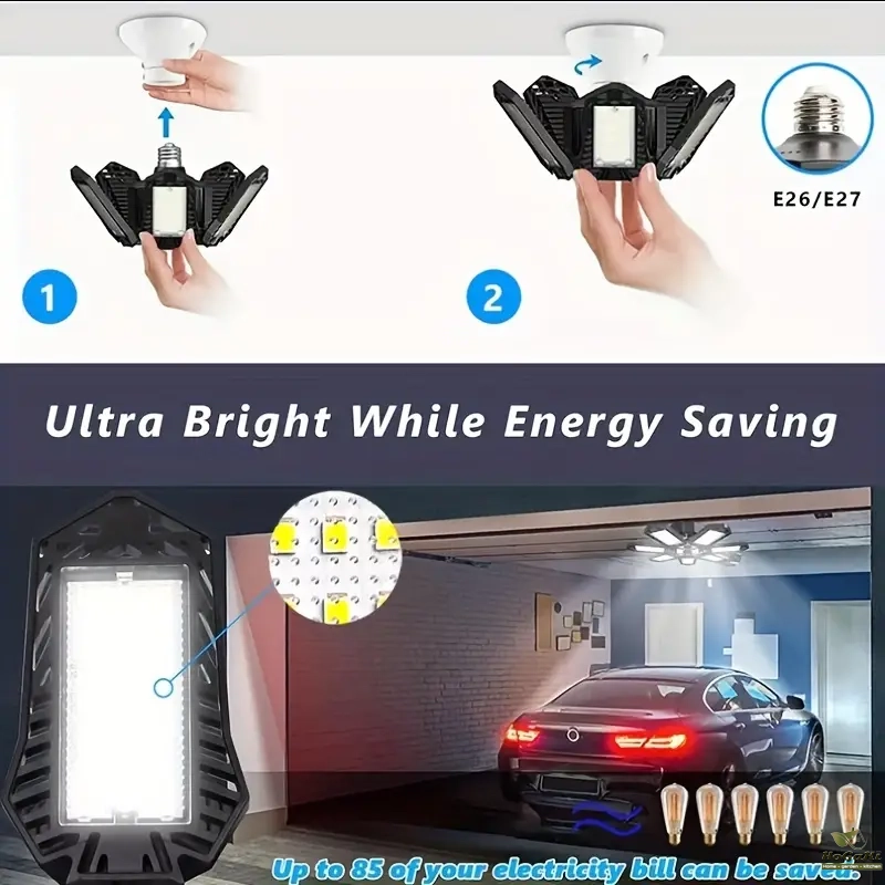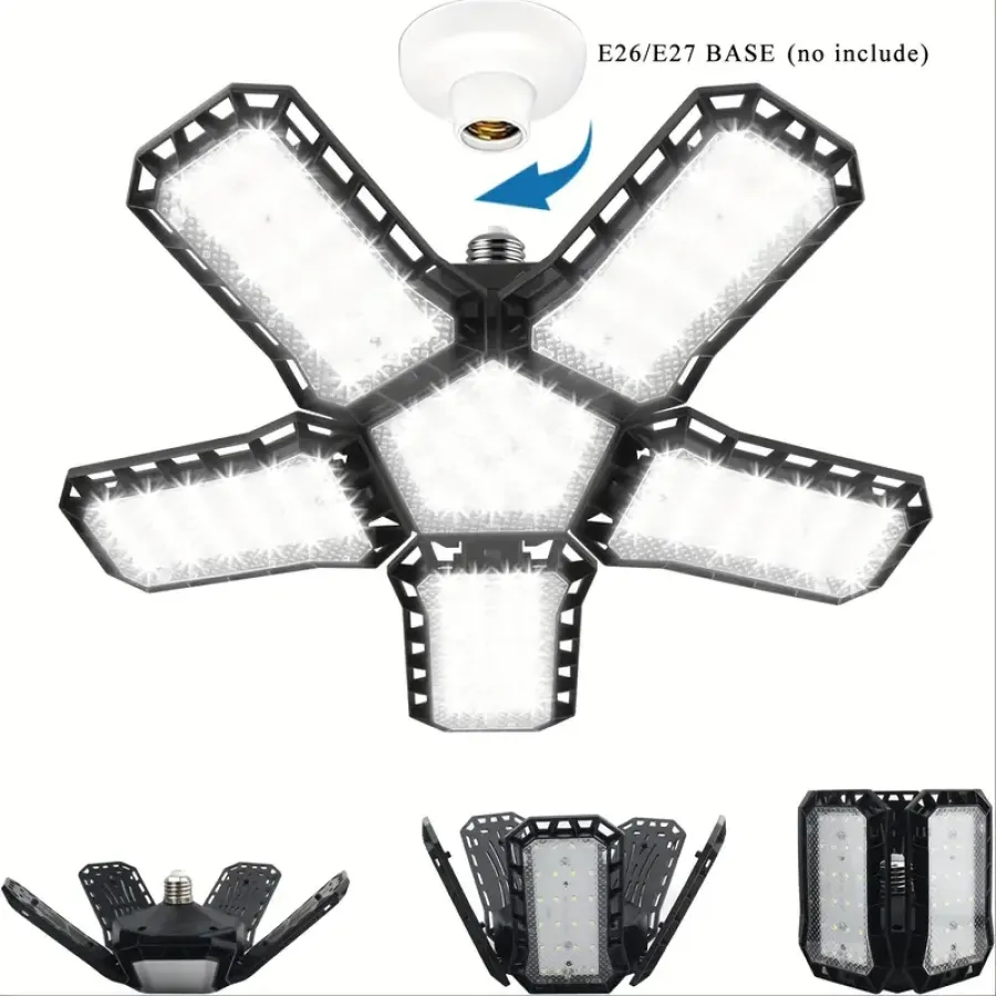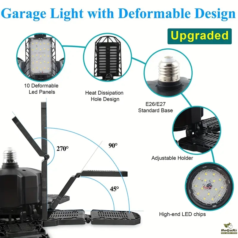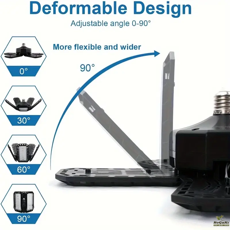【Garage Light Easy to install, No Wiring Required】The deformable led garage light is compatible with the E26/E27 light socket(Not Included), which makes its installation as simple as screwing a light bulb, no tools, no wiring and no professional electricians are needed.