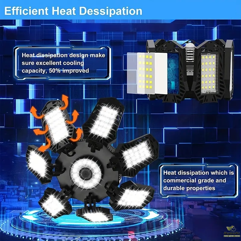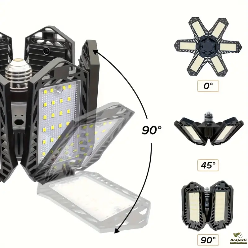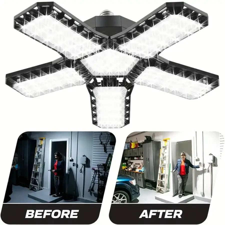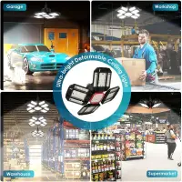 【Flexible&Unique Design】Each of the LED panels can be adjusted to fold up to 90° so that you can adjust garage light and easily illuminate various dark corners; this will make the light cover 360° area.