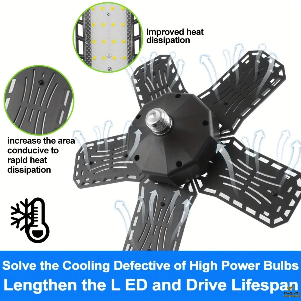 Foldable LED Bulbs E27 Garage Light Deformable Ceiling Work Lamp Screw-into E26/E27 Bulb(Not Included)With 3/5/6/7/10/12 Adjustable Multi Panels Shop Market Ceiling Lamp For Workshop Warehouse Lighting