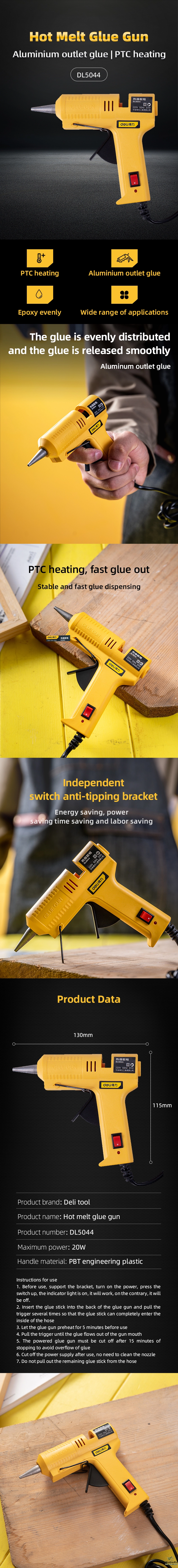 • High Power Efficiency :The Deli Glue Gun boasts a high power efficiency of 20W to 60W, ensuring quick and effective gluing for all your home DIY projects.
