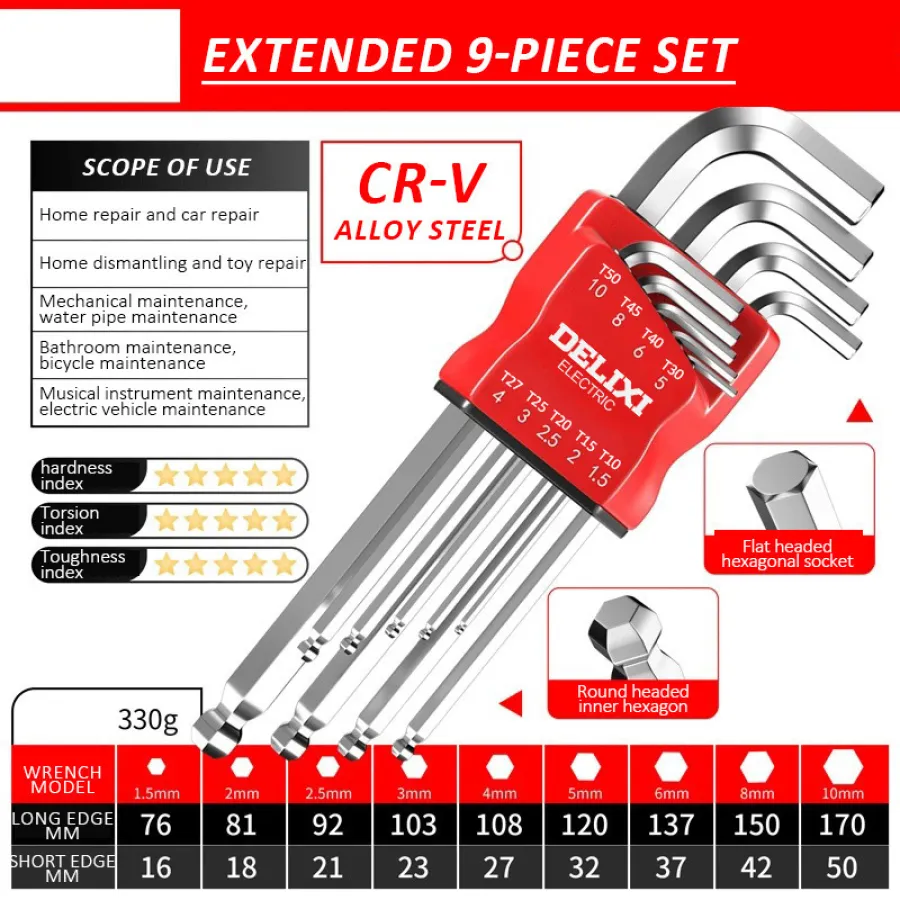 • High-strength Material :Crafted from high-strength material, this hex wrench set ensures durability and longevity, making it a reliable tool for various tasks.