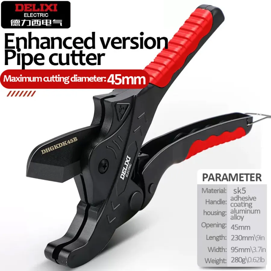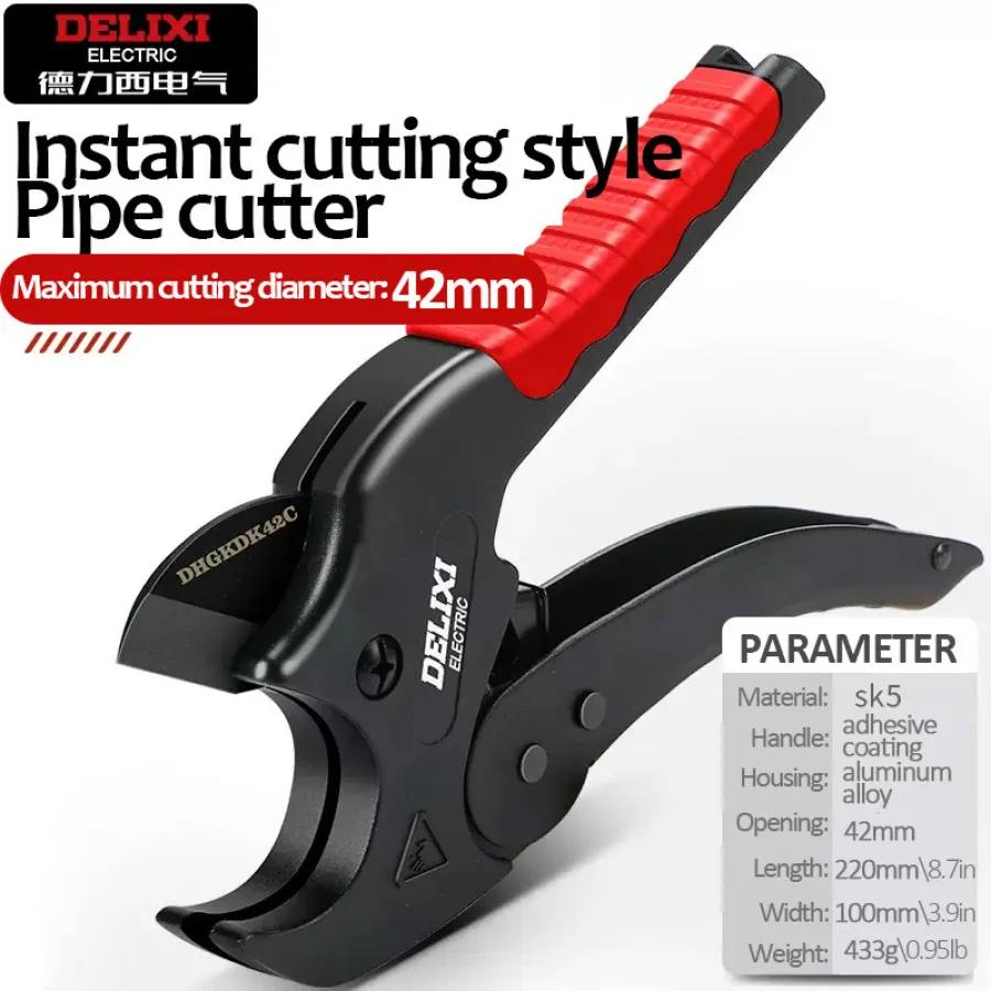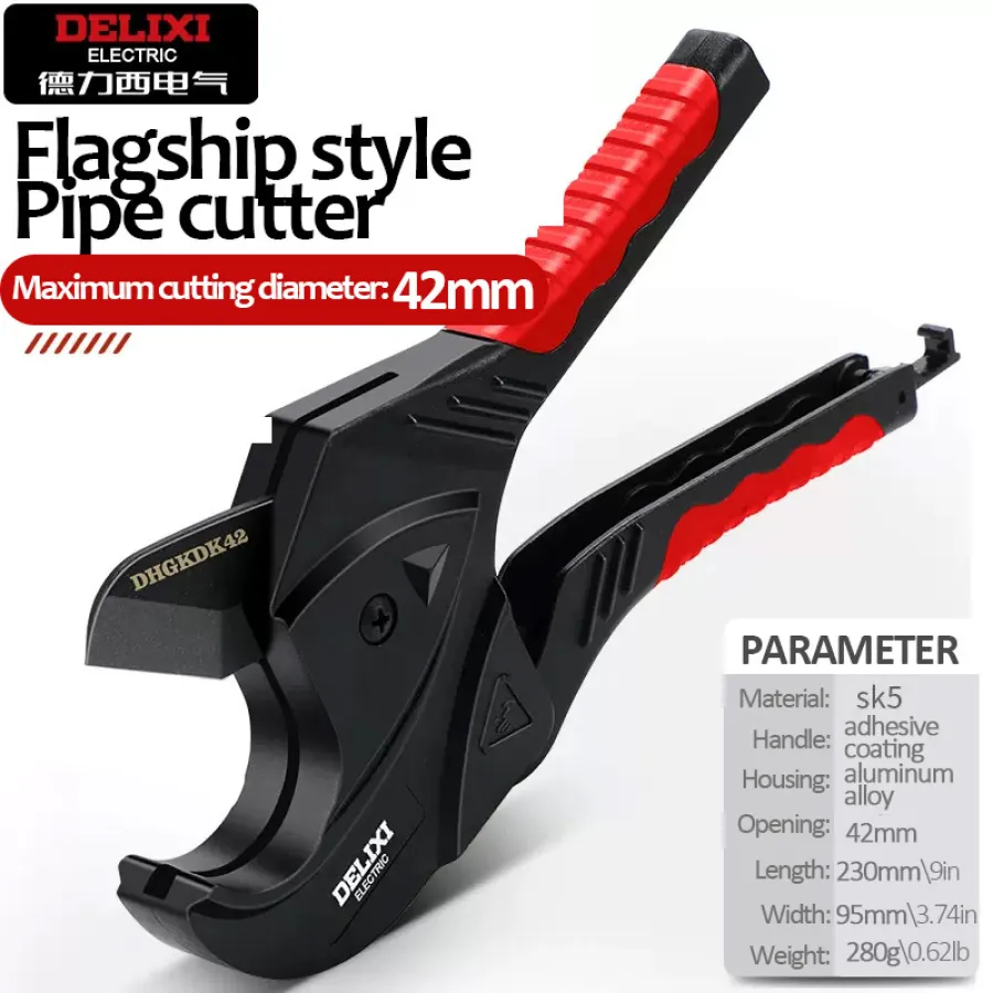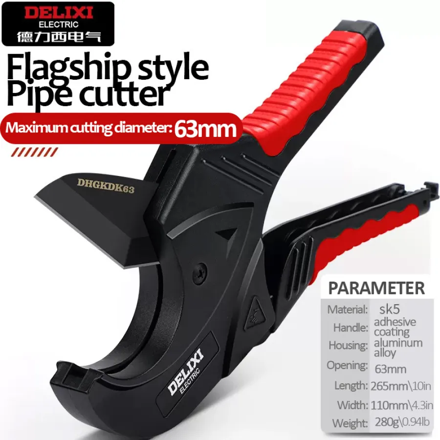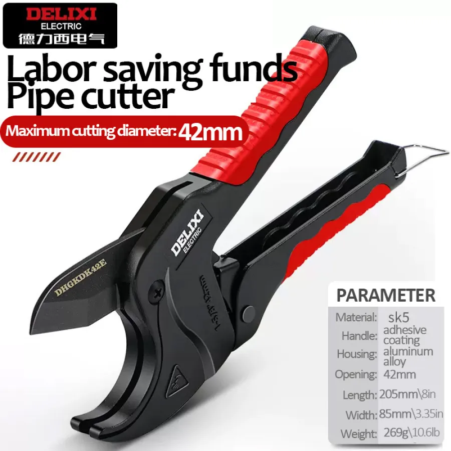 DELIXI ELECTRIC Pipe Cutter,Pipe Scissors SK5 Material Ratchet Cutter PVC/PU/PP/PE Hose Cutting Hand Tool,for Plumber,Homeowners