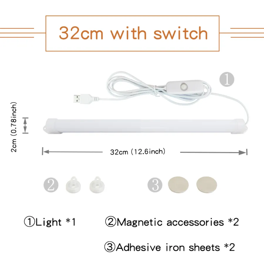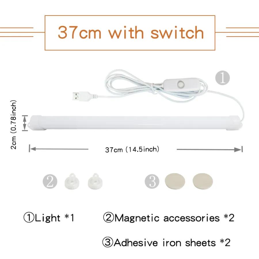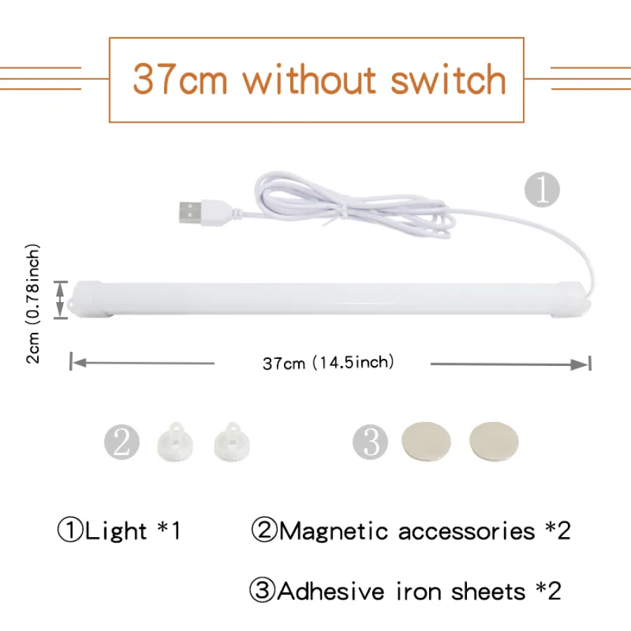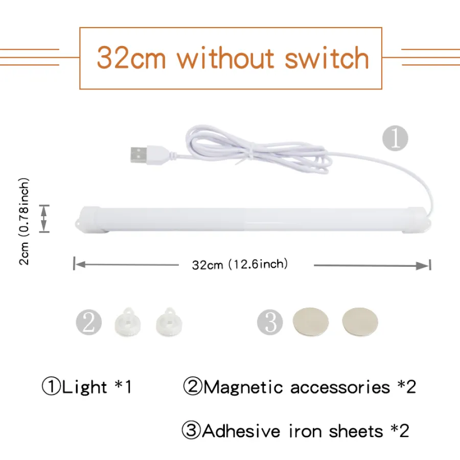 Package contents:1*Light,2*Magnetic accessories,2*Adhesive iron sheets
