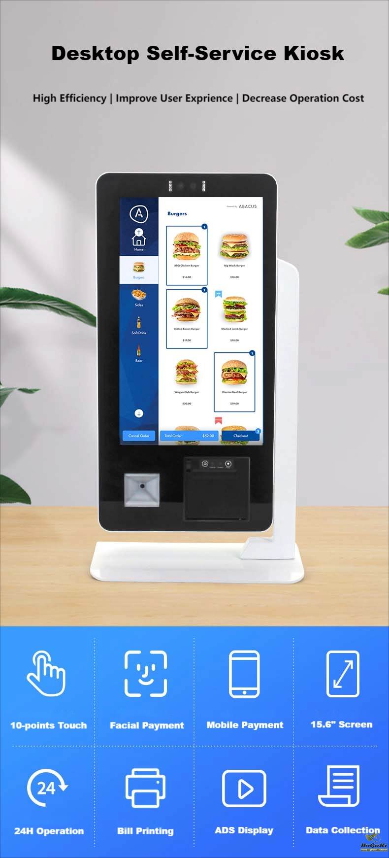 15.6 Inch Desktop Android Self Ordering Kiosk