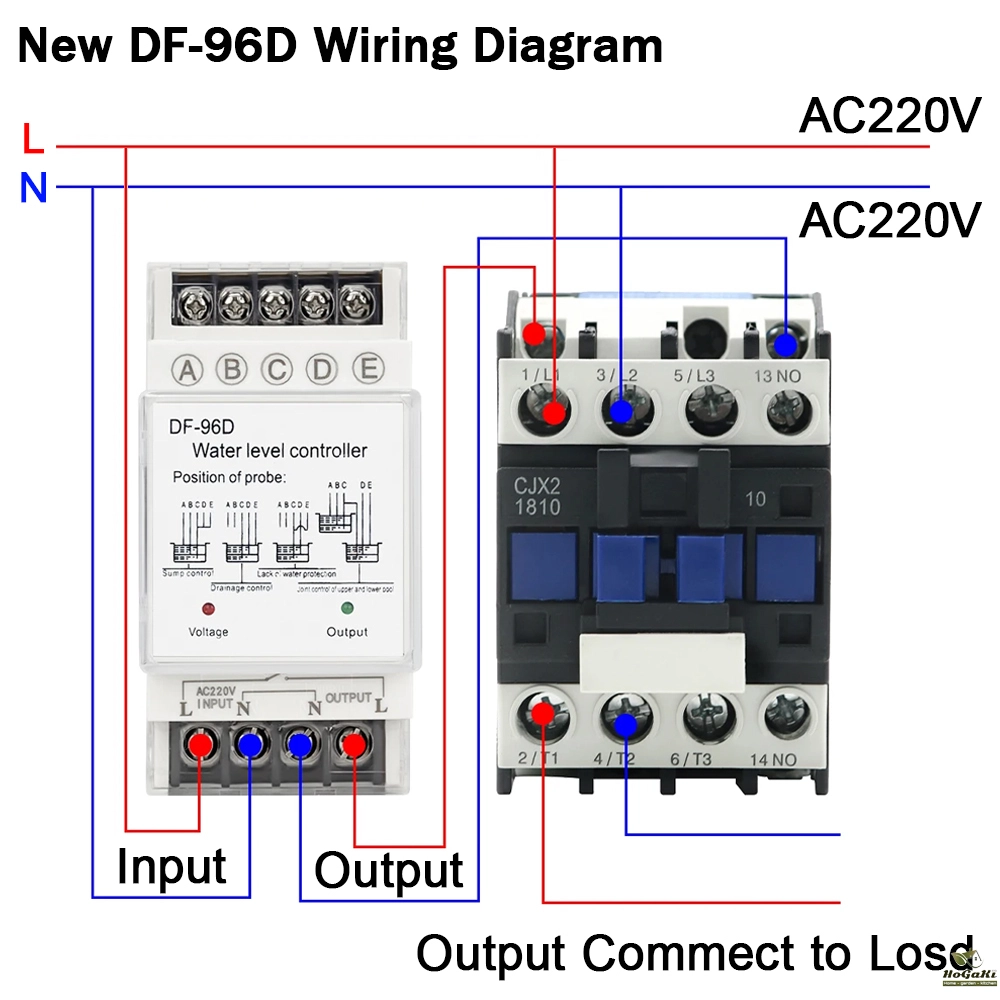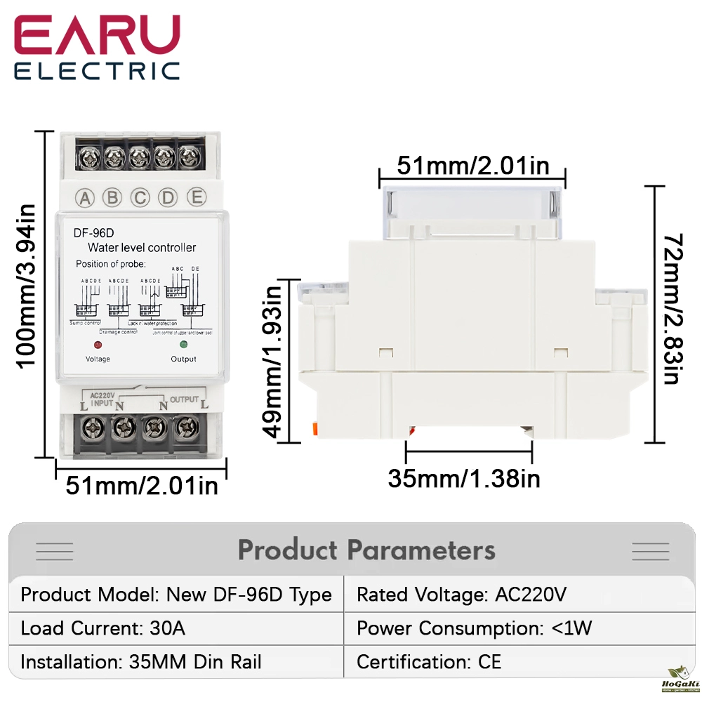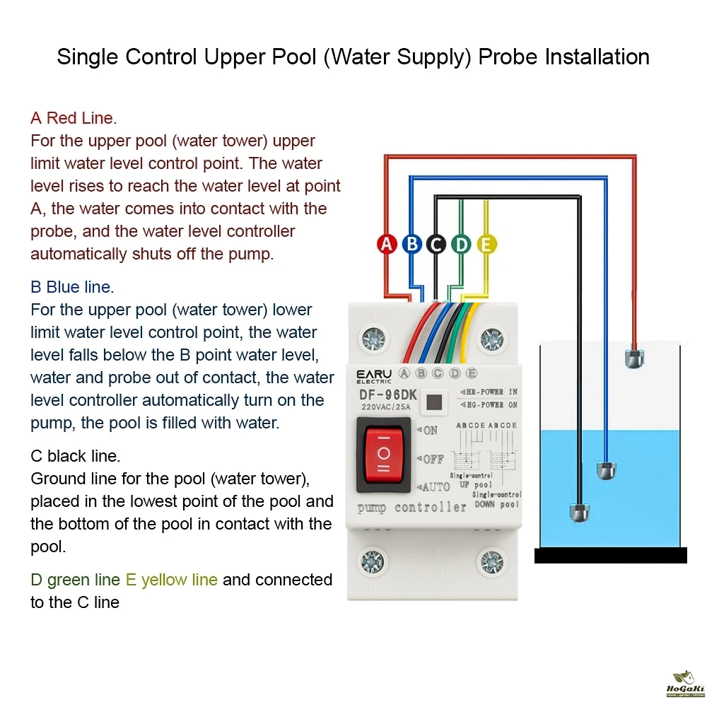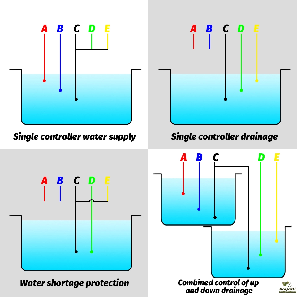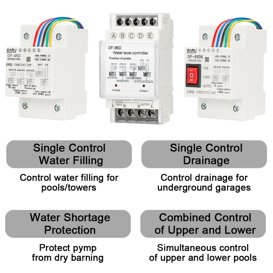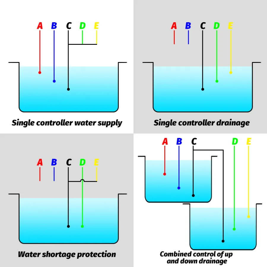 D-limit for the next pond level control point, the water level dropped to D level, water and probe disengagement, water level controller automatically shuts the pump to stop the drainage basin;