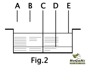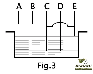 E-limit pond level control for the next point, the water reached the point E are rising water level, water in contact with the probe, the water level controller automatically open the pump, pond drainage; Without drainage, the E point is not connected ;