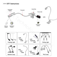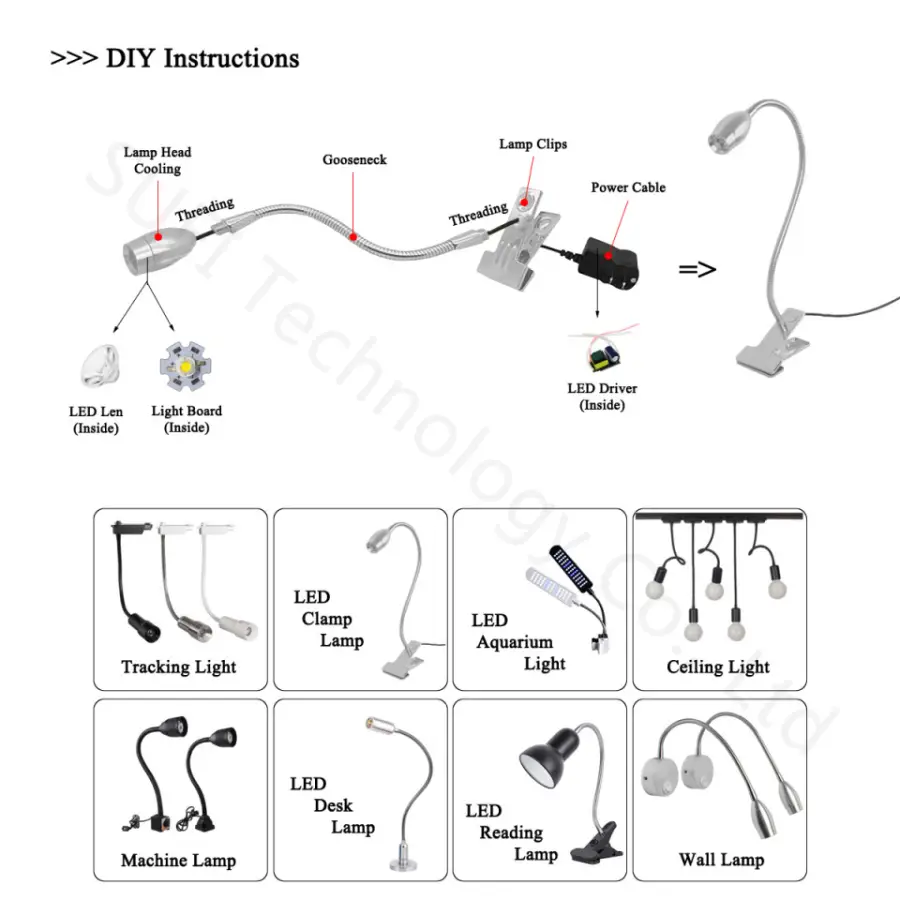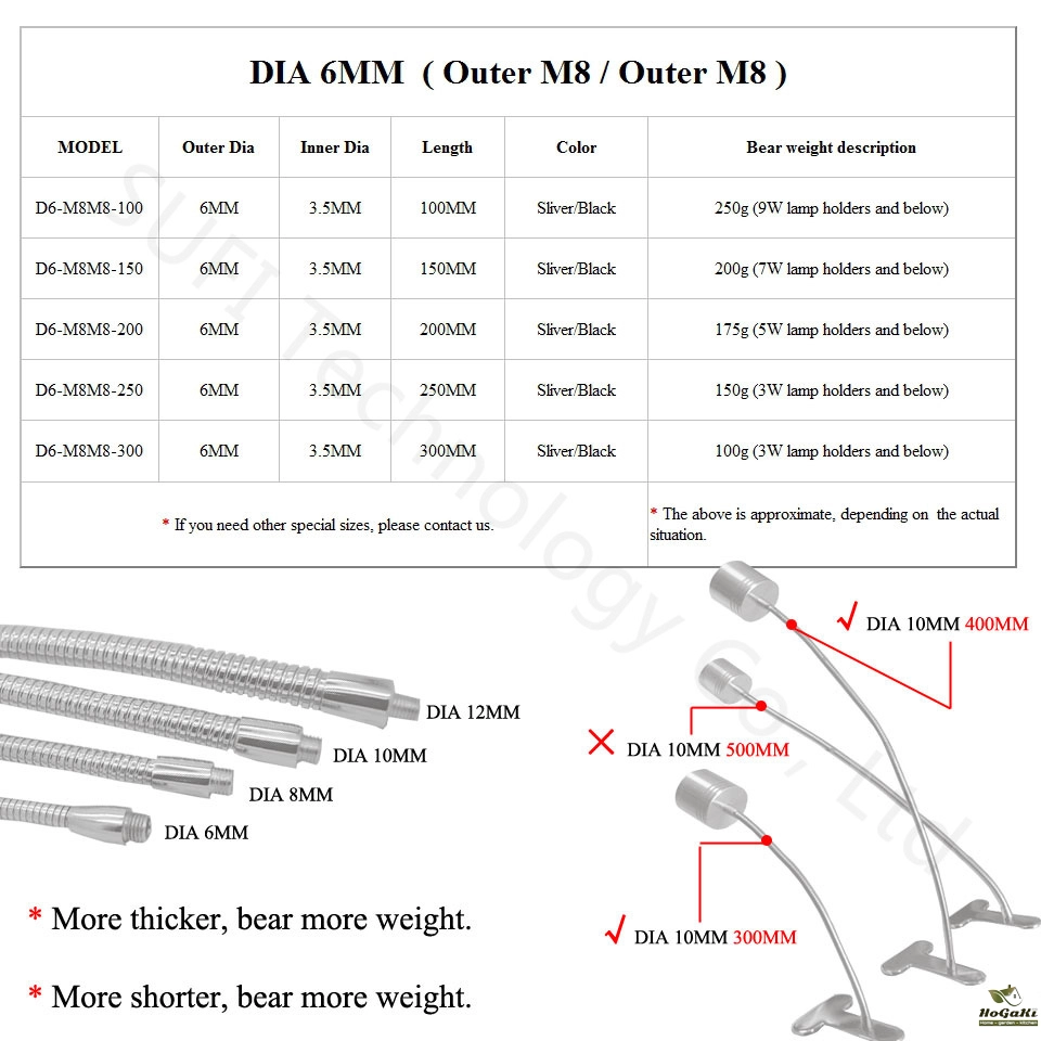 Diameter 6mm LED Serpentine Tube Desk Lamp Hose LED Gooseneck 10/20/30CM Flexible Light Holder M6 M8 M10 Screw Metal Pipe