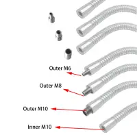 3 pieces M10 Metal Tube Double Ends with Male Threads Screw Hollow Pipe Lighting Fixtures for Table Lamps