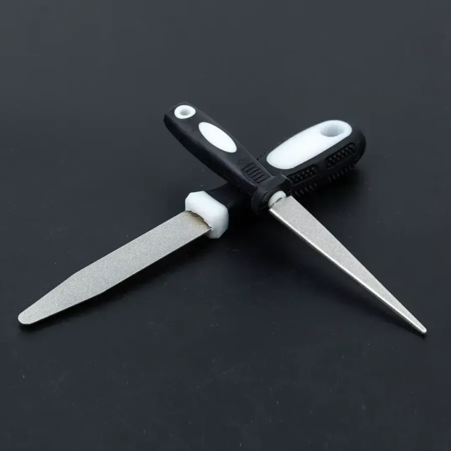 Double-sided design: Both sides of the file have flat and curved surfaces, allowing for easy sharpening of various tools.