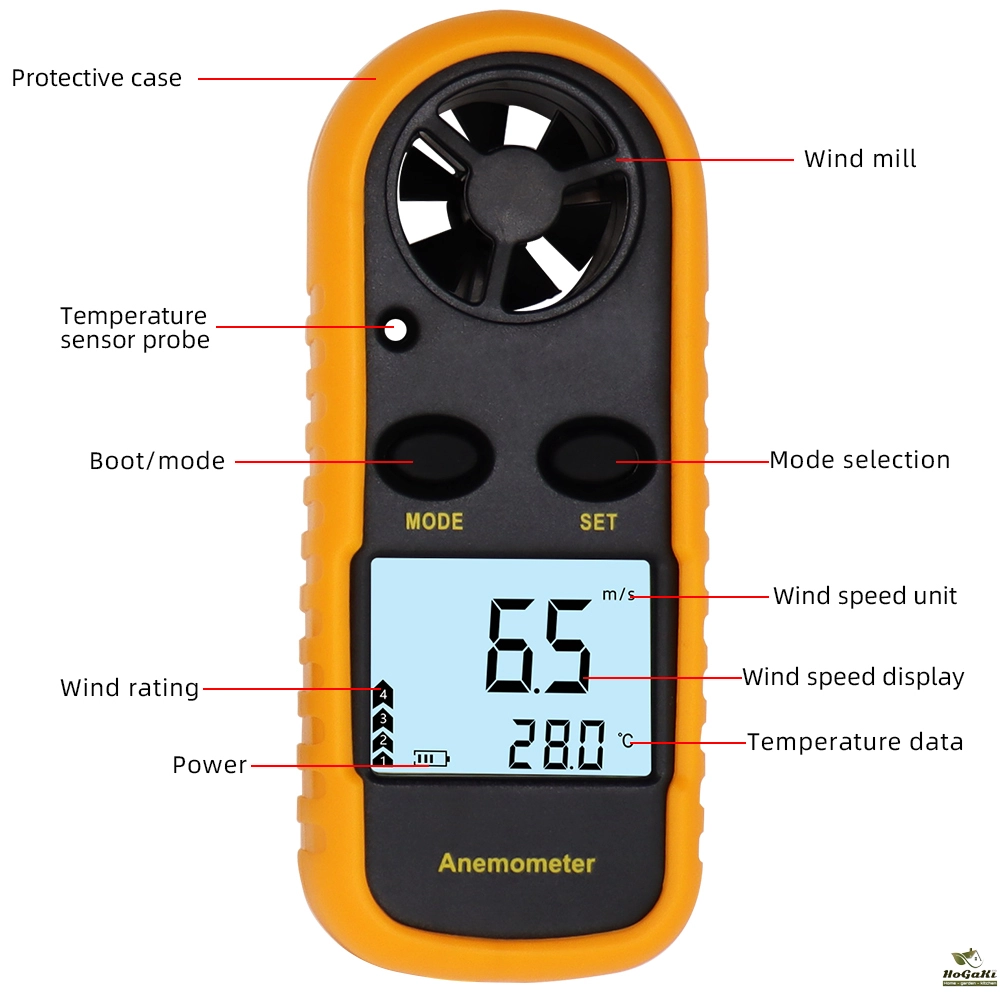 This anemometer with palm size is protective by rubber shell.
