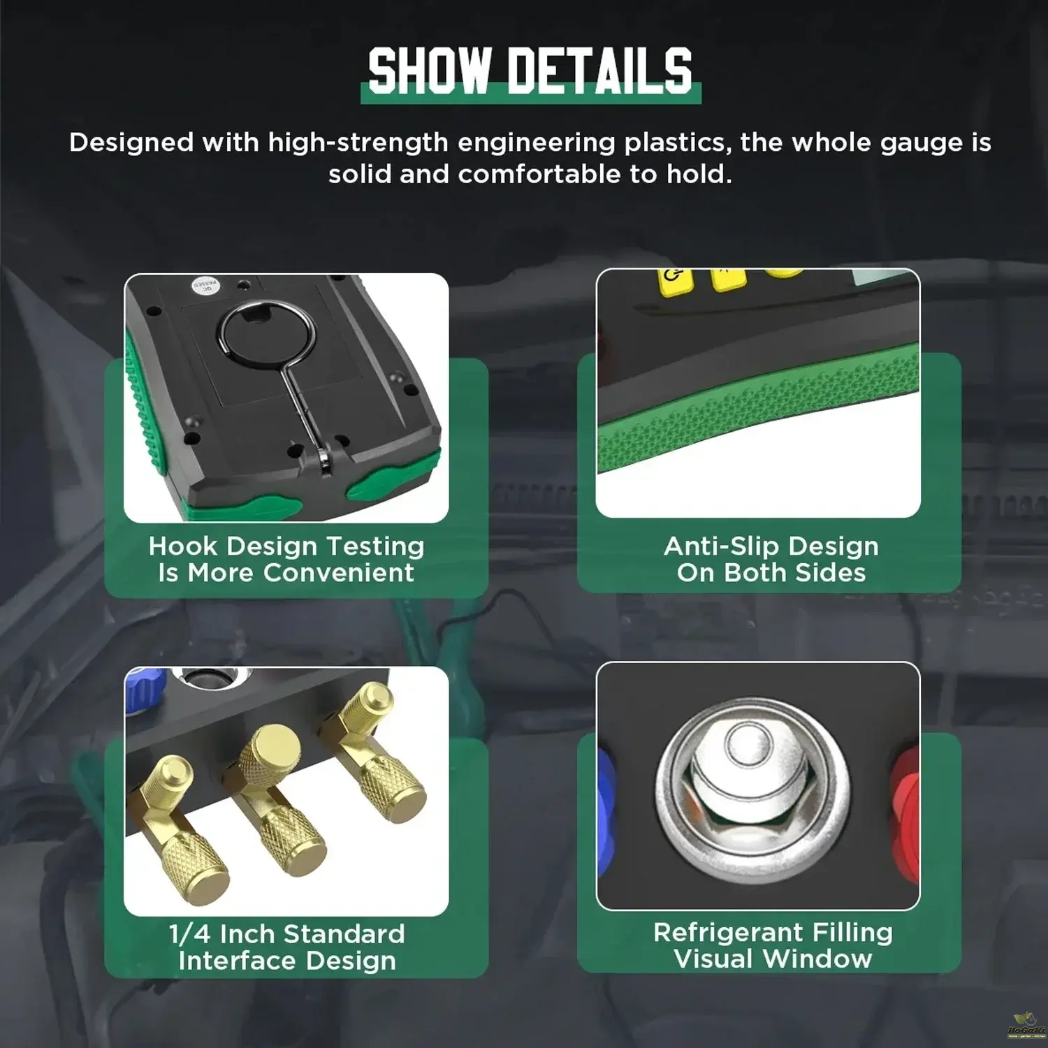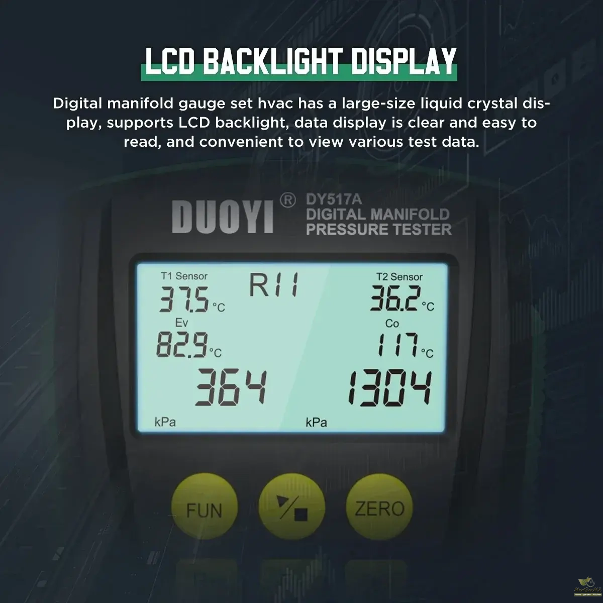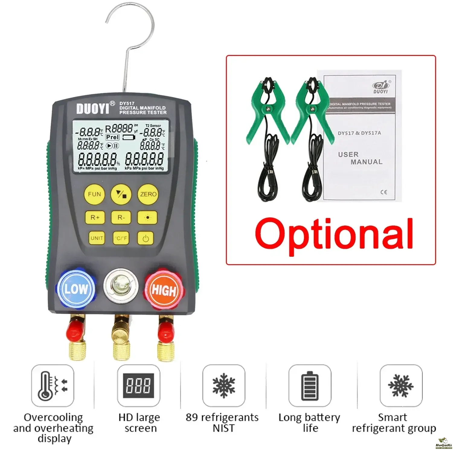 Also it tests percentage of vacuum measurement; pressure leak measurement, leak time speed record. It is deserved to have this multi-functional, accurate and simply operated digital manifold let you do the job right.