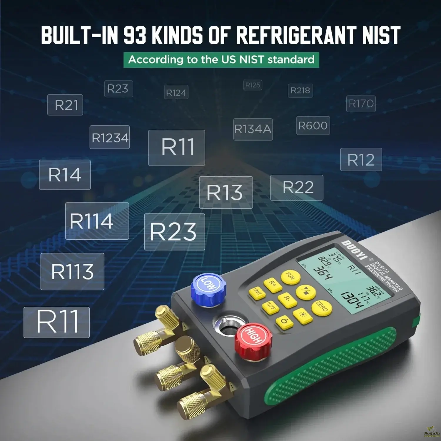 Built-in 93 kinds of refrigerant pressure-evaporation temperature database, also calculate the subcooling superheat, to facilitate direct reading of operating process data.