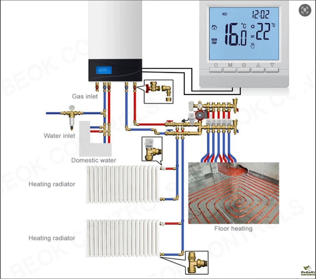 It can be connected to a gas boiler (3A) and Compatible with Watrt Floor heating systems.