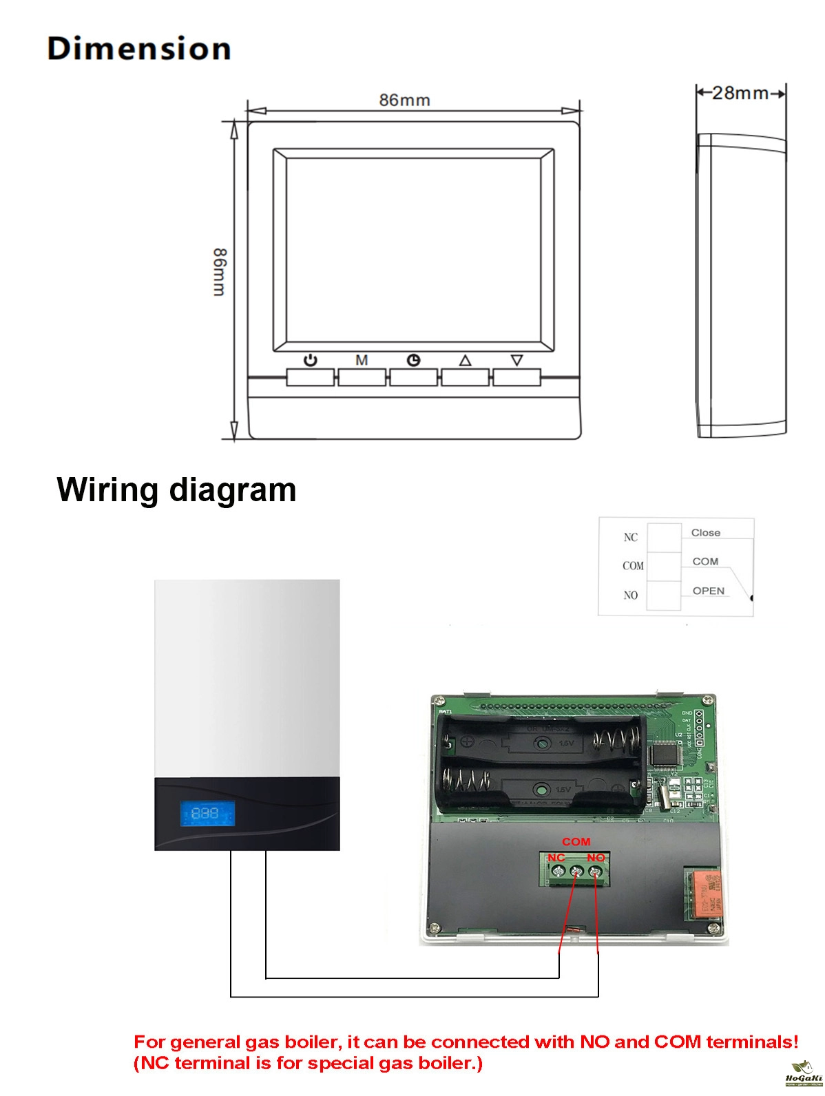 The ME83 gas boiler thermostat is with LCD digital display screen. It is with 1.5V two sections of AA batteries. It is used to control boilers to start or stop working in order to adjust temperature. Thermostat detects room temperature, when actual room temperature is lower than your set temperature, thermostat controls boiler to start working. Then thermostat controls boiler to stop working when actual room temperature is higher than your set temperature.