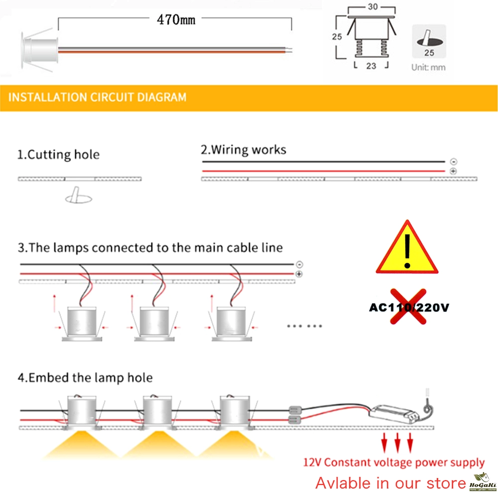 Dimmable 1W LED 15mm Recessed Spotlight IP65 Home Kitchen Ceiling Spot Light Indoor DC12V Stair Cabinet Lighting Dropshipping