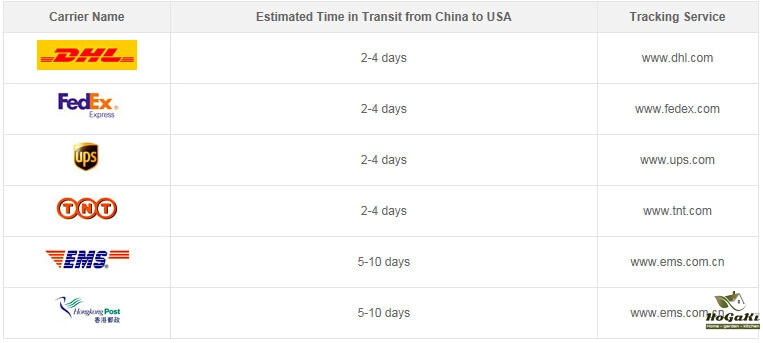 Packages from our warehouse in China will be shipped by ePacket or EMS depending on the weight and size of the product. Packages shipped from our US warehouse are shipped through USPS.