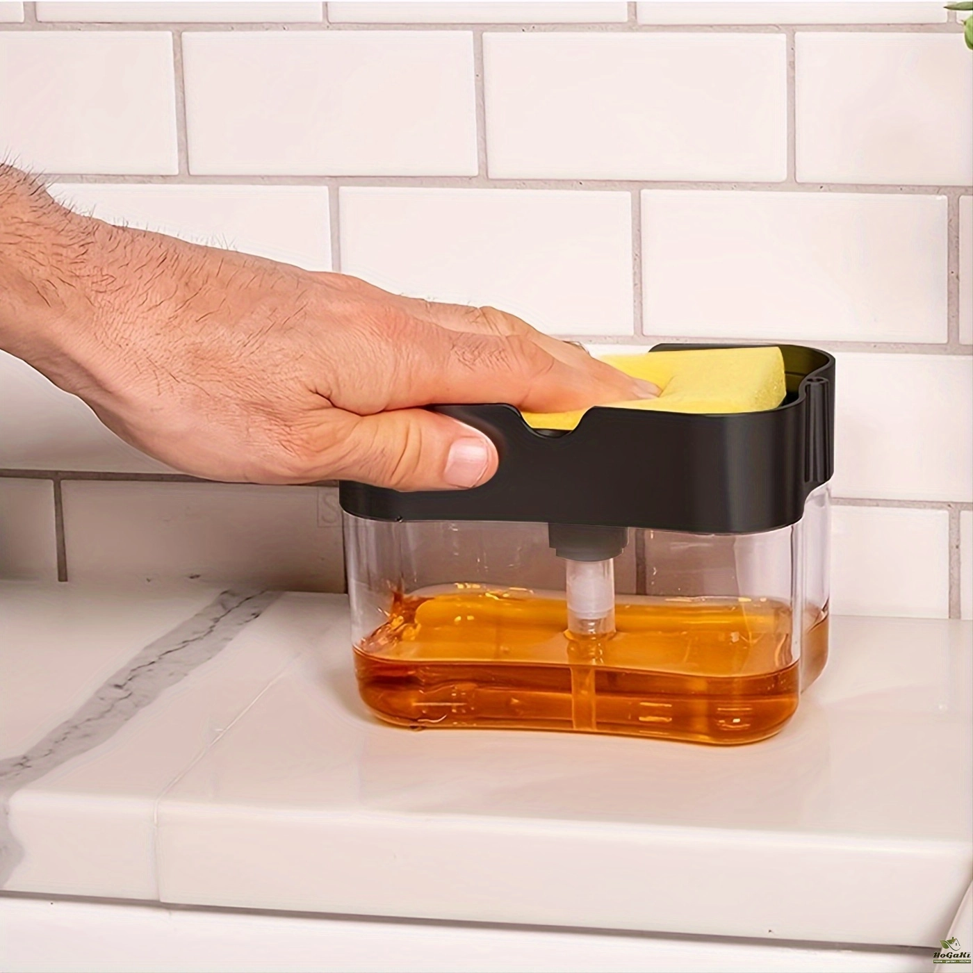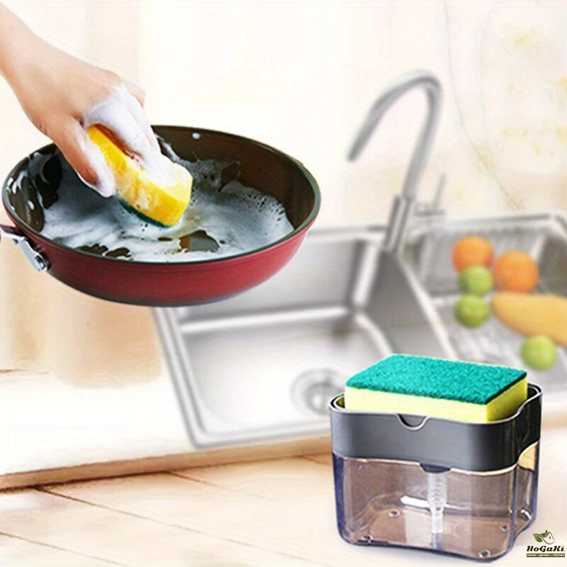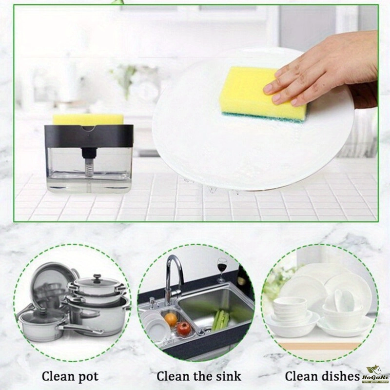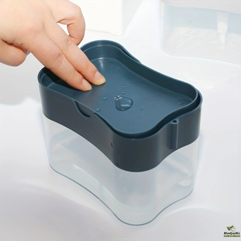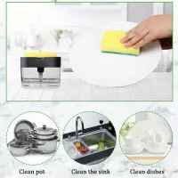 Method: Manually press and gently press the top plate to distribute soap directly onto the sponge. It will sprinkle proper amount of dishwashing soap on the sponge