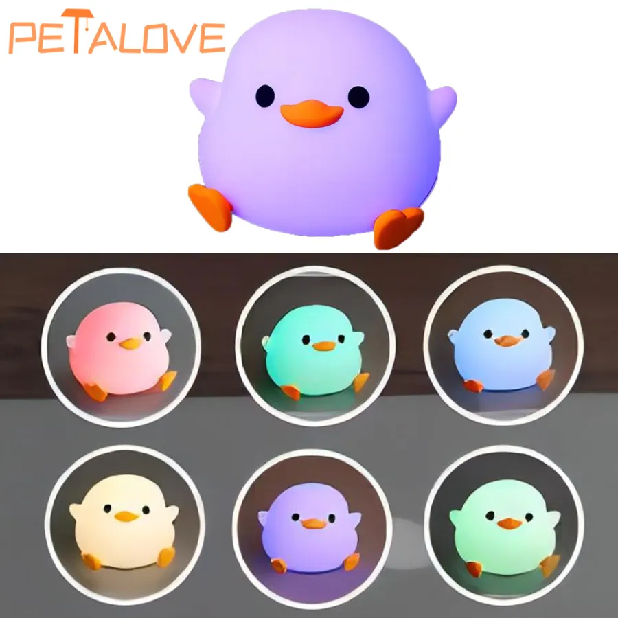 Duck Silicone Night Light for Children with Timer USB Rechargeable Dimming Touch Lamp Sleeping Bedroom Cartoon Animal Decor Gift